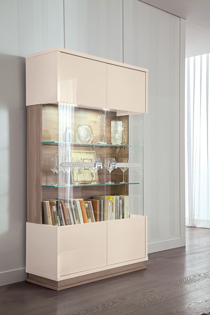 Inne elementy z kolekcji Evolution to 2-drzwiowy i 4-drzwiowy kredens z dopasowanym lustrem oferującym dużo miejsca do przechowywania oraz wybór 1-drzwiowych i 2-drzwiowych witryn z wewnętrznym oświetleniem LED. Szafka RTV jest również dostępna, jeśli chcesz poszerzyć kolekcję o salon. Kredensy, gabloty i szafki RTV również oferują wybór uchwytów. Pokazana na zdjęciach piękna rączka z logo na skórzanym pasku zmienia modele Evolution w bardzo nowoczesną współczesną kolekcję.