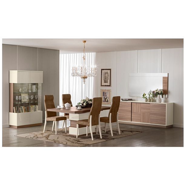 Nowoczesny włoski stół do jadalni Evolution ma piękne drewno i kontrastujące wykończenie w kolorze kości słoniowej. Ten włoski zestaw do jadalni może pomieścić od 4 do 10 osób i jest idealny zarówno dla mniejszych, jak i większych rodzin.
