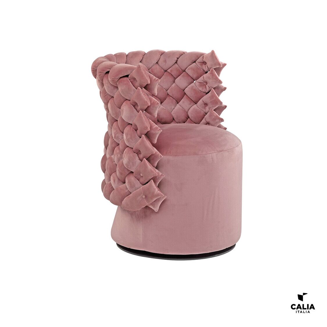 Giuggiola to fotel marki Calia Italia, który uwydatnia piękno. Jest to model, który wita Cię szykiem i kreatywnym komfortem i jest dostępny w wersjach z siedziskiem stałym, obrotowym i ze schowkiem. Poduszka siedziska z ekologicznej pianki poliuretanowej pokrytej 100% warstwą poliestru.
