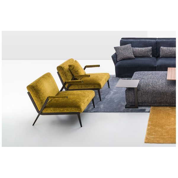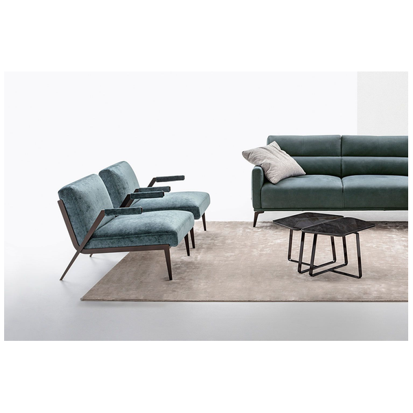 Fotel Lima firmy Nicoline Italia to wyjątkowe rozwiązanie do siedzenia, które dobrze komponuje się z resztą mebli w nowoczesnym salonie. Z lekko odchylonym oparciem i pochylonymi nogami zapewnia ergonomiczne podparcie sprzyjające prawidłowej postawie, miękka tapicerka zapewnia komfort przez wiele godzin. Solidne podłokietniki wykorzystują zabawną geometrię i są tapicerowane na końcach, aby zapewnić przytulny dotyk. Dzięki niesamowitemu włoskiemu kunsztowi fotel będzie trwały przez wiele lat. Dostosowanie przyciągającego wzrok fotela Lima to pestka, dzięki różnym opcjom tapicerki z tkaniny i skóry, a także różnym metalowym wykończeniom nóg. Szwy są dostępne w dopasowanych, jaśniejszych lub ciemniejszych kolorach.