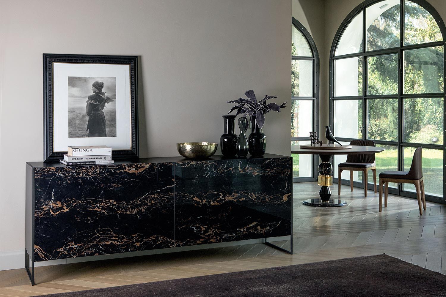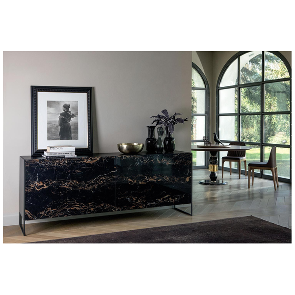 Idra to luksusowy dodatek do nowoczesnego domu, dzięki któremu przedmioty są uporządkowane i niewidoczne. Klasyczny design dodaje ponadczasowego stylu do salonu, przedpokoju lub foyer, a marmurowe drzwi wyróżniają się eleganckim wyglądem. Trwałe i solidne, półki z przyciemnianego szkła wewnątrz konstrukcji z łatwością mieszczą przedmioty, a drzwi z miękkimi zawiasami są wygodną funkcją zapewniającą jakość na długi dystans. Wyprodukowany we Włoszech z niesamowitą dbałością o szczegóły, komoda Idra od Tonin Casa jest w wysokim stopniu dostosowana do indywidualnych potrzeb. Wybierz spośród różnych matowych wykończeń ramy, różnych marmurowych wykończeń drzwi i szeregu metalowych wykończeń podstawy. Aby rozjaśnić swoje rzeczy, dodaj opcjonalne wewnętrzne oświetlenie LED.