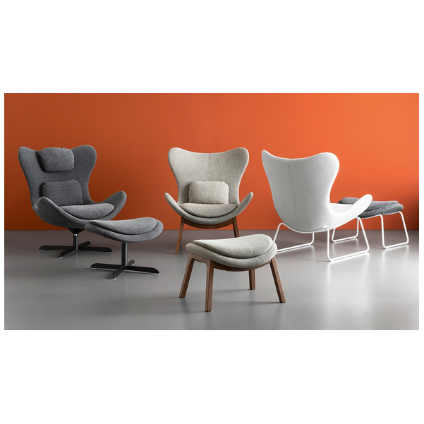 Lazy to fotel o falistych liniach i szerokim, przytulnym siedzisku, dzięki czemu jest idealnym towarzyszem chwil relaksu. Miękka poduszka siedziska i podparcia lędźwi, która doskonale dopasowuje się do spienionego na zimno poliuretanu, sprawia, że fotel jest niezwykle wygodny. Wersja Lazy z powlekaną metalową podstawą doskonale nadaje się do użytku domowego i kontraktowego.