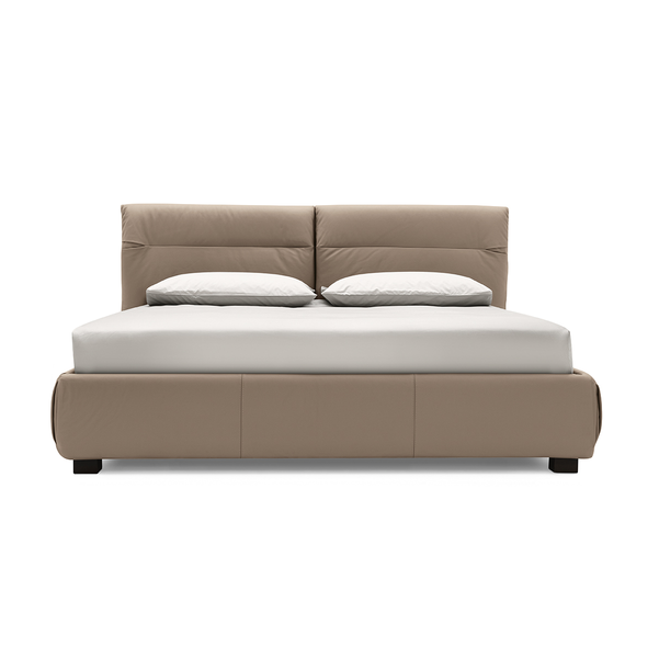 Austin to łóżko ze zintegrowanym wezgłowiem i poduszką. Te dwie miękkie, wygodne poduszki zostały podwyższone za pomocą zakładki, która podobnie jak detal na garniturze staje się znakiem rozpoznawczym produktu, który podkreśla dotykowe piękno skóry i tkaniny. Poziome stebnowanie wyznacza linię łączącą, która łagodzi efekt wizualny i tworzy elegancką wyrafinowaną estetykę łóżka z dodatkową opcją kontenera.