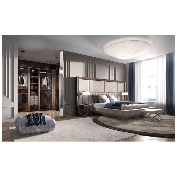 Interpretacja strefy spania w imię precyzji. Kimera to łóżko tapicerowane, które kładzie nacisk na materiały i miękką wyściółkę zagłówka dostępnego w tkaninie lub skórze.