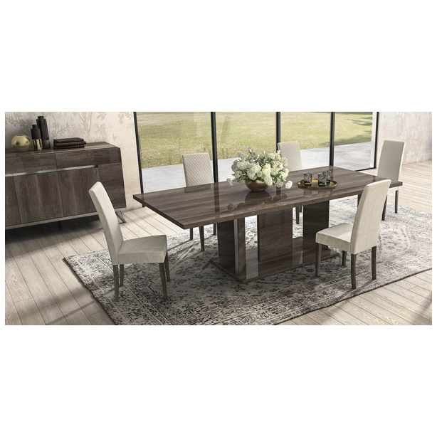Medea to stylowy zestaw, który łączy w sobie urok nowoczesności z lekką nutą klasyki. Kolekcja opracowywana jest z uwzględnieniem trendów branży meblarskiej z wykorzystaniem tajnych technik produkcji i zdobienia, wyposażenia, innowacyjnych materiałów, które podkreślają kreatywne myślenie projektantów, którzy swoje śmiałe pomysły ucieleśniają w kompozycji. Meble charakteryzują geometryczne kształty, prezentowane w wykończeniu vintage dąb, w błyszczących lakierach, których aplikacja odbywa się w kilku etapach. Całość zdobią również: przezroczyste szkło hartowane, polerowane chromowane fazowane nogi gablot, cokoły i kredensy, lustra, wbudowane oświetlenie, a także ekoskóra tapicerka krzeseł.