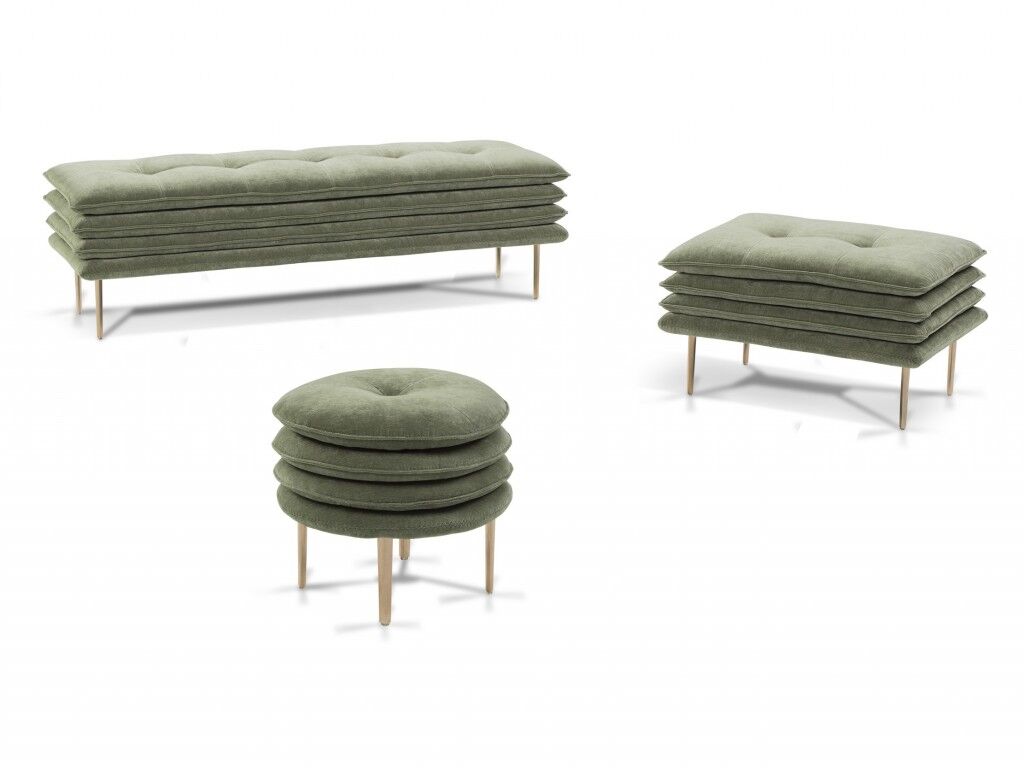 Model Mater Familias jest również dostępny jako pufa i podnóżek, oferuje prostokątne i okrągłe kształty, a także wersje ławkowe. W porównaniu z niewielkimi rozmiarami podnóżków, ławka jest dłuższą i płytszą wersją, która może służyć jako ławka w salonach lub jako podstawa łóżka do wyposażenia sypialni. Produkty te, charakteryzujące się typowymi wielowarstwowymi siedzeniami, mają na celu tworzenie nowych konfiguracji, które tworzą przestrzeń wykraczającą poza funkcjonalne podziały pomieszczeń, przekształcając je w niepowtarzalny wymiar, w których można żyć komfortowo. Poduszki siedziska wykonana są z ekologicznej pianki poliuretanowej połączonej z warstwą pianki pokrytej warstwą 100% poliestru.