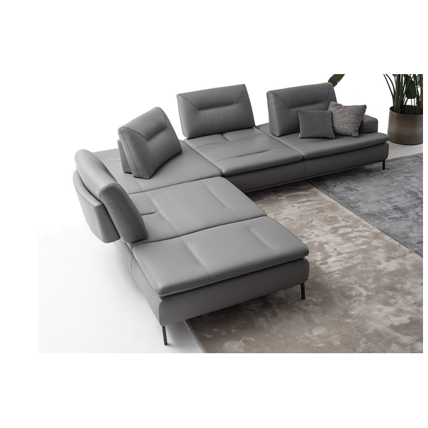 Dodaj elegancki i wyrafinowany styl do nowoczesnego salonu dzięki wyjątkowej narożnej sofie Cavour. Ruchome poduszki oparcia przesuwają się do tyłu, tworząc głębsze i przytulniejsze siedzisko. Dzięki wysokiej jakości konstrukcji i zastosowaniu najlepszych materiałów będzie trwałym meblem na długie lata. Narożna sofa Cavour jest produkowana we Włoszech z niezwykłą dbałością o szczegóły i jest dostępna w dwóch rozmiarach oraz w konfiguracji lewej i prawej. Opcje tapicerki obejmują tkaniny i skóry, a szwy mogą być dopasowane do materiału lub mieć jaśniejszy lub ciemniejszy kolor. Nogi wykończone są w kolorze brązu.