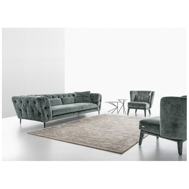 Czarujący styl do nowoczesnego domu, dzięki sofie Cordusio firmy Nicoline Italia. Ozdobione guzikami detale wzdłuż ramy tworzą teksturowany wzór w stylu argyle, nadający geometryczny akcent. Dzięki głębokiemu siedzisku i wyściełanej wyściółce jest nie tylko oszałamiający, ale także stanowi wygodne miejsce do siedzenia i relaksu. Dzięki zastosowaniu najlepszej jakości materiałów sofa przez długi czas będzie stanowić podstawowy element mebla. Wyprodukowana we Włoszech z niezwykłą dbałością o szczegóły, sofa Cordusio jest dostępna w trzech rozmiarach. Wybierz między różnymi opcjami tapicerki z tkaniny i skóry, a także dopasowanymi, jaśniejszymi lub ciemniejszymi przeszyciami. Nogi mają różne metalowe wykończenia.