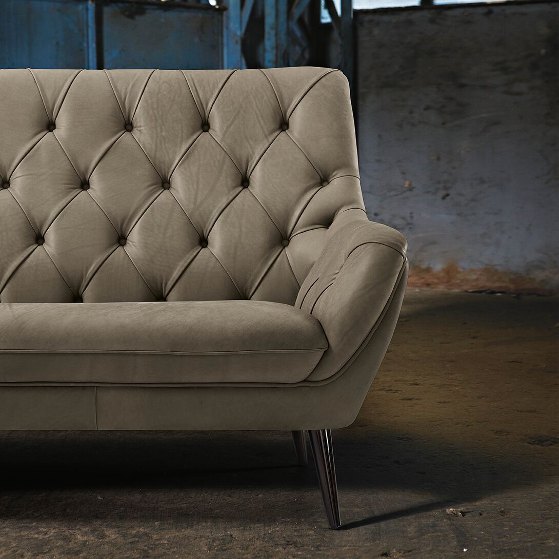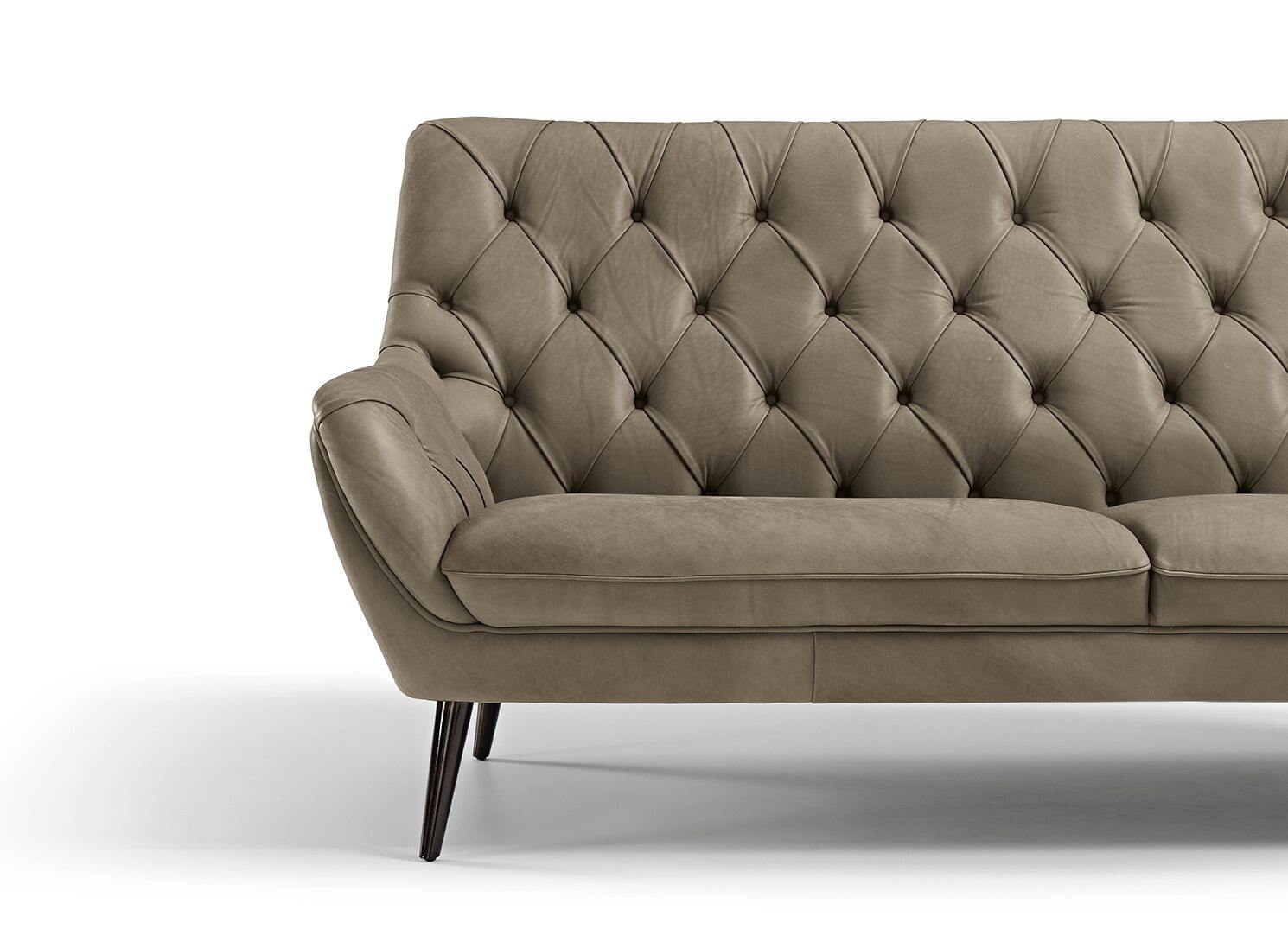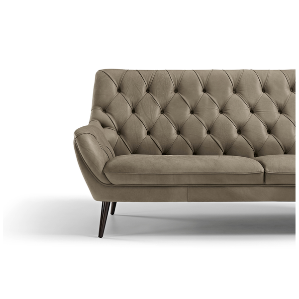 Chesterfield we współczesnej tonacji, elegancja, wyrafinowanie i dbałość o szczegóły to tylko niektóre z wielu aspektów kojarzonych z tym modelem, cechy wzmocnione wygodą wysokiego oparcia, nie zawsze cechą klasycznych salonów. Tapicerowany czystą skórą anilinową, charakteryzującą się wyjątkową miękkością, Grace to klasyczny i nowoczesny model, który można z łatwością umieścić w każdym salonie.