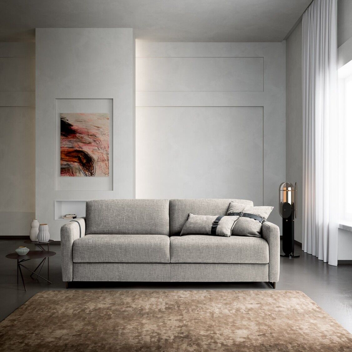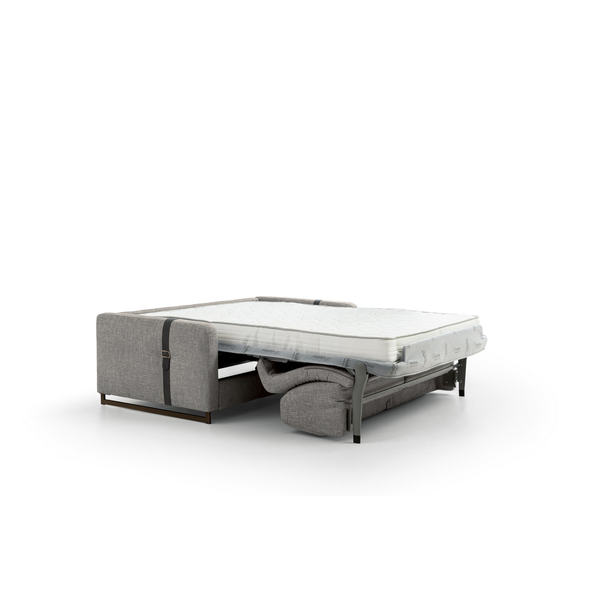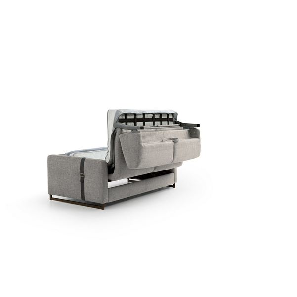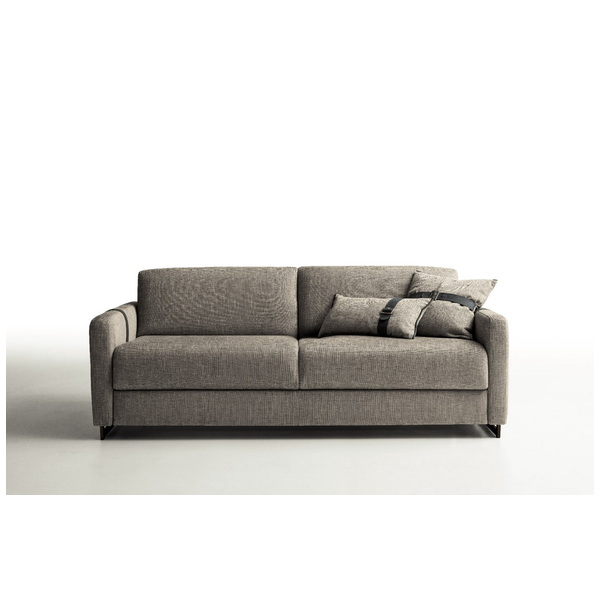 Usiądź, rozluźnij się lub połóż się i wyśpij dobrze na eleganckiej i praktycznej sofie Maya firmy Nicoline Italia. Sofa łatwo przekształca się w łóżko, po prostu rozkładając oparcie i poduszki siedziska, które składają się pod materacem, co jest idealne do miejsc, w których brakuje miejsca. Przyciągające wzrok sprzączki dodają jej stylowego akcentu, który sprawia, że sofa jest wspaniałym centralnym punktem. Dzięki miękkiej tapicerce i wyściełanej wyściółce zarówno na poduszkach sofy, jak i na materacu, sofa zapewnia wygodę i wsparcie przez wiele godzin. Maya dostępna jest w dwóch rozmiarach, aby zaspokoić indywidualne potrzeby. Dostępne są opcje tapicerki materiałowej i skórzanej, a także dopasowane, jaśniejsze lub ciemniejsze szwy. Nogi są dostępne w wielu metalowych opcjach.