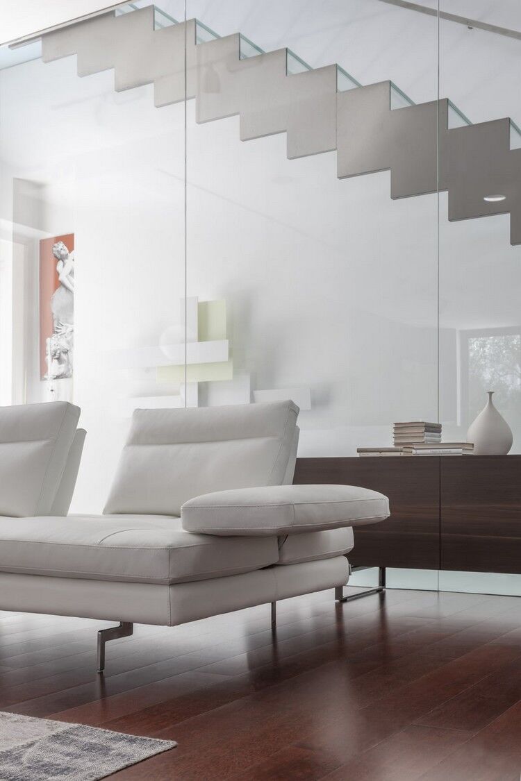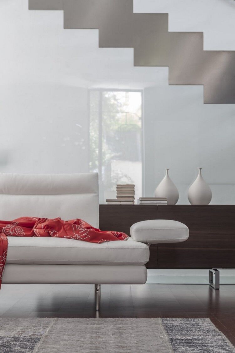 Wersja narożna z niezależnymi odchylanymi oparciami pozwala na jej całkowite wykorzystanie. Ta najnowsza wersja stanowi kolejny plus dla kanciastej kompozycji, która przy wszystkich odsuniętych plecach osiąga niezwykle hojny wymiar, stając się wyspą gotową na przyjęcie całej rodziny. Elementem, który dodaje Toby Wingowi dodatkowej lekkości, jest smukła metalowa podstawa, którą można dostosować w wykończeniach tytanowych, satynowych, błyszczących i Graubraun. Najnowszym dodatkiem do domu Calia jest przezroczysta stopka z metakrylanu, która dodatkowo rozjaśnia projekt dzięki grze przezroczystości, która wydaje się zachęcać Toby'ego Winga do wzbicia się w powietrze.