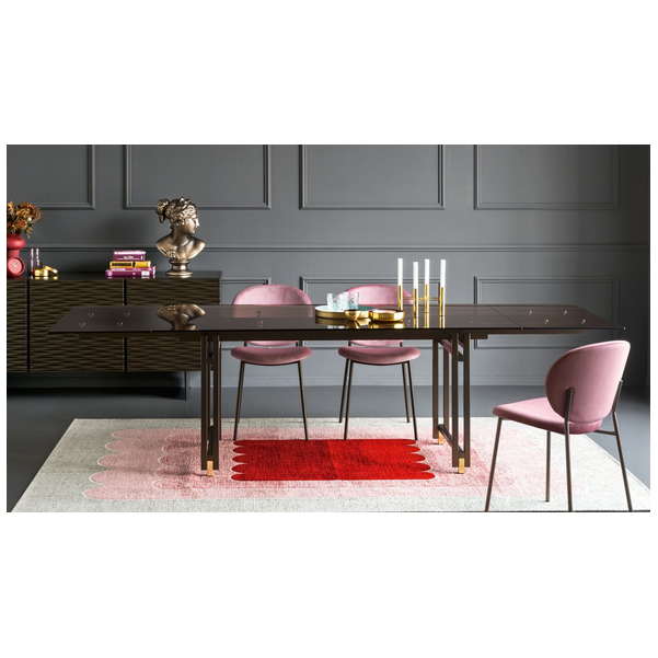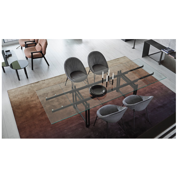 Rygorystyczny i formalny rozkładany stół Berlin inspirowany jest metalowymi konstrukcjami podziemia jego imiennika: niemieckiego miasta. Stół wywołuje wrażenie ekstremalnej lekkości dzięki przezroczystemu szklanemu blatowi i wspierającej go minimalistycznej podstawie składającej się z metalowej rury o przekroju kwadratowym. Dzięki dwóm niezależnym dobudowaniom Berlin idealnie pasuje do dużych jadalni. Idealnie wkomponowane w konstrukcję, ślizgają się po aluminiowych prowadnicach dopasowanych do podstawy i zwiększają długość stołu o trzy stopy.