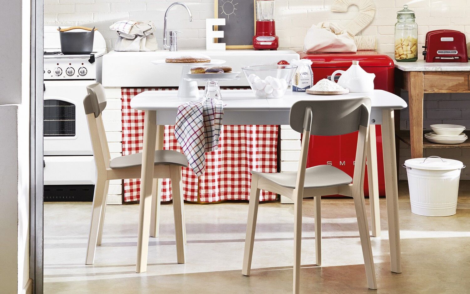 W połączeniu z krzesłami i taboretami z rodziny Cream jest idealnym drewnianym stołem do dekoracji kuchni.