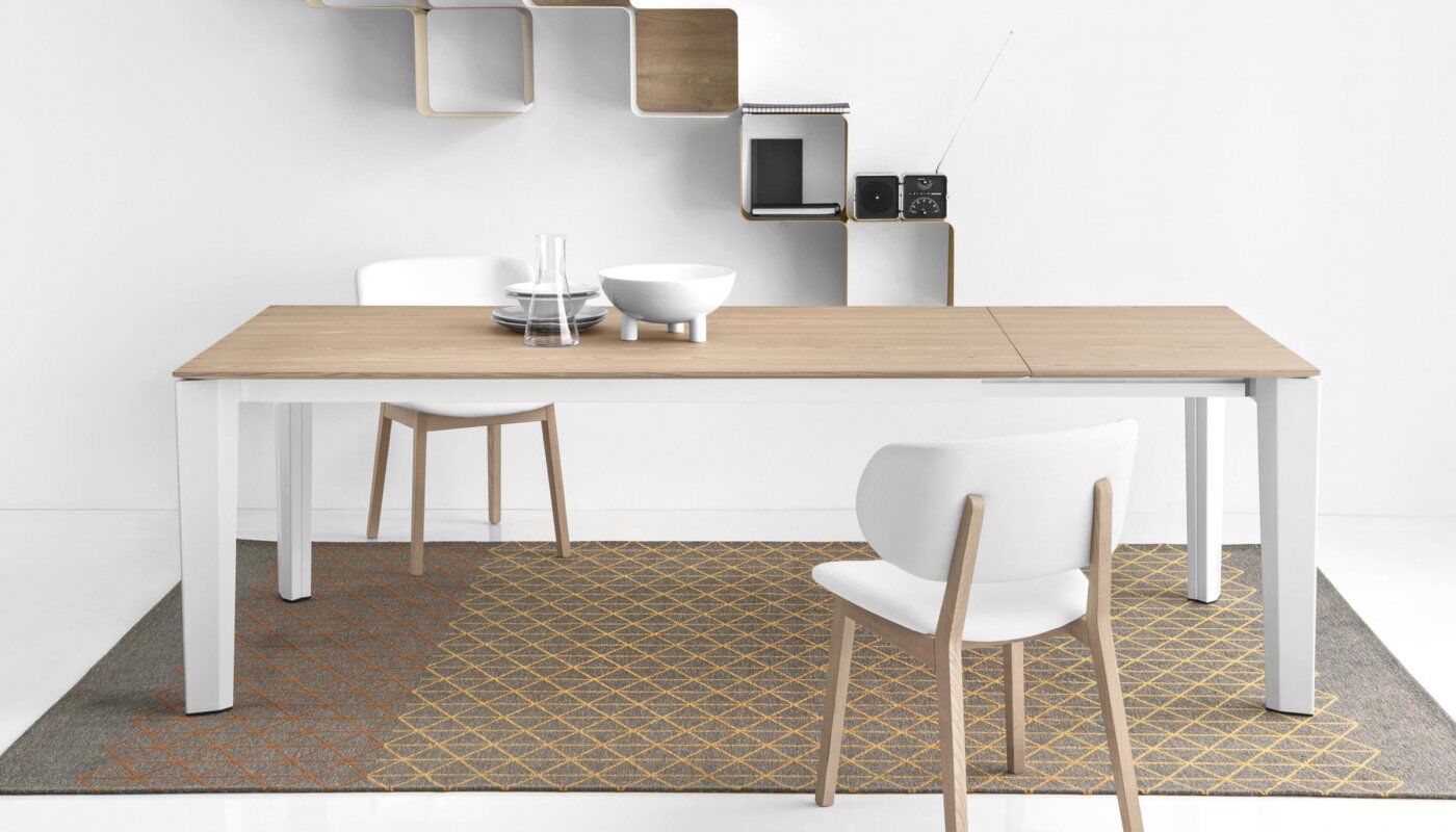 Stół rozkładany Delta z metalowymi nogami. Stół Delta ma ukośne nogi i blat, który rozciąga się wzdłuż prowadnic. Nogi zawsze pozostają w rogach stołu, zapewniając maksymalny komfort wszystkim gościom.