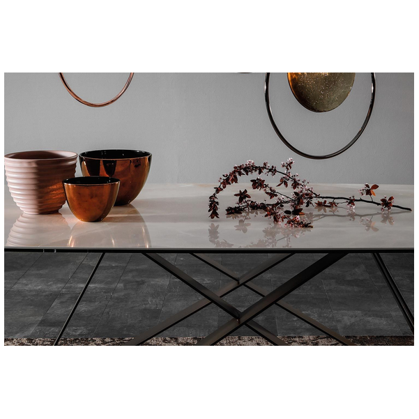 Status firmy Tonin Casa dodaje rustykalnego stylu do współczesnej jadalni. Dzięki rzeźbiarskiej podstawie robi wielkie wrażenie w pomieszczeniu i zawiera kombinację krzywizn, kątów i krzyżujących się akcentów, aby wykorzystać geometrię. Kontrastujące wykończenia wyróżniają się, dodając atrakcyjności. Boki dodają ostry styl, który wzbudza współczesny wygląd. Aby uzyskać spójny wygląd, połącz stół z różnymi stylowymi krzesłami Tonin Casa. Zaprojektowany przez Angelo Tomaiuolo i wyprodukowany we Włoszech, aby zapewnić jakość, stół do jadalni Status jest dostępny w trzech rozmiarach. W górnej części dostępne są różne opcje ceramiczne, a do podstawy dołączony jest szereg metalowych wykończeń.