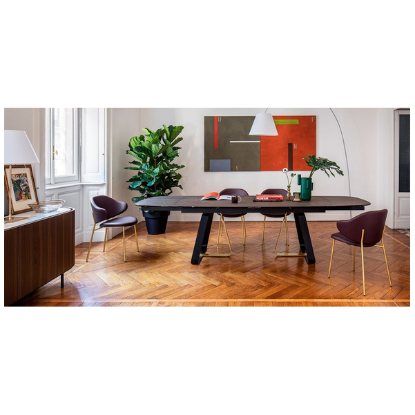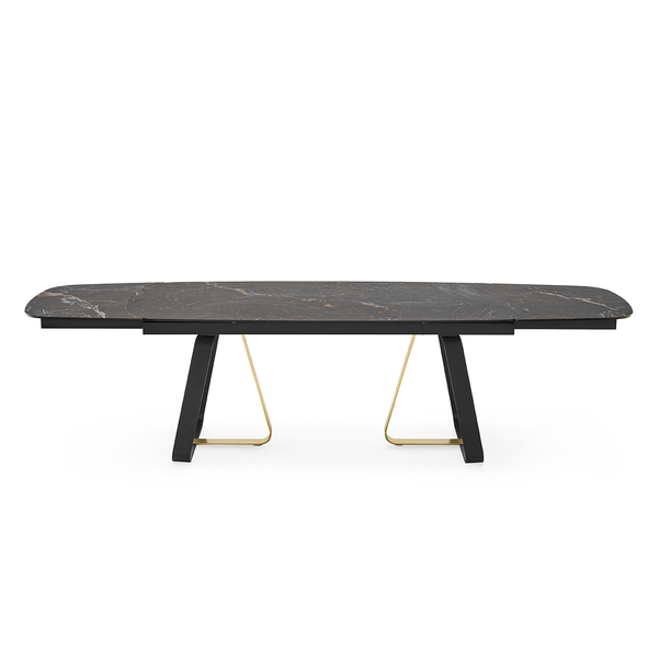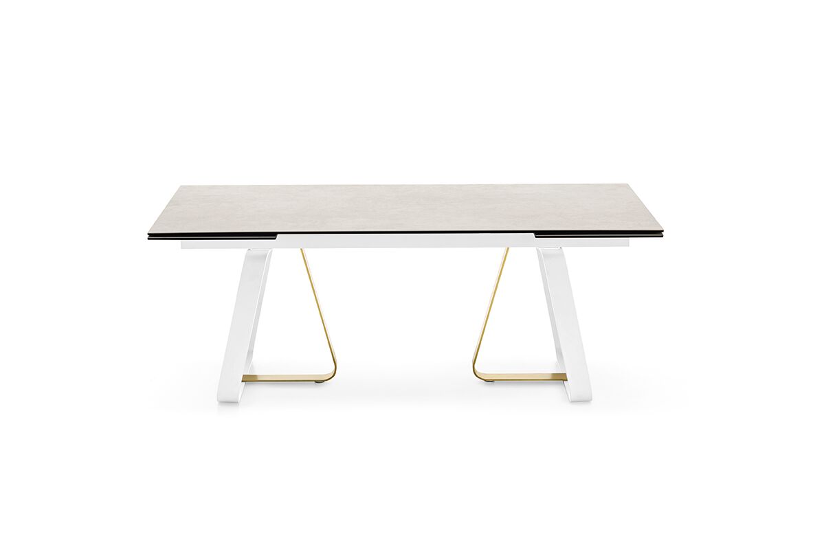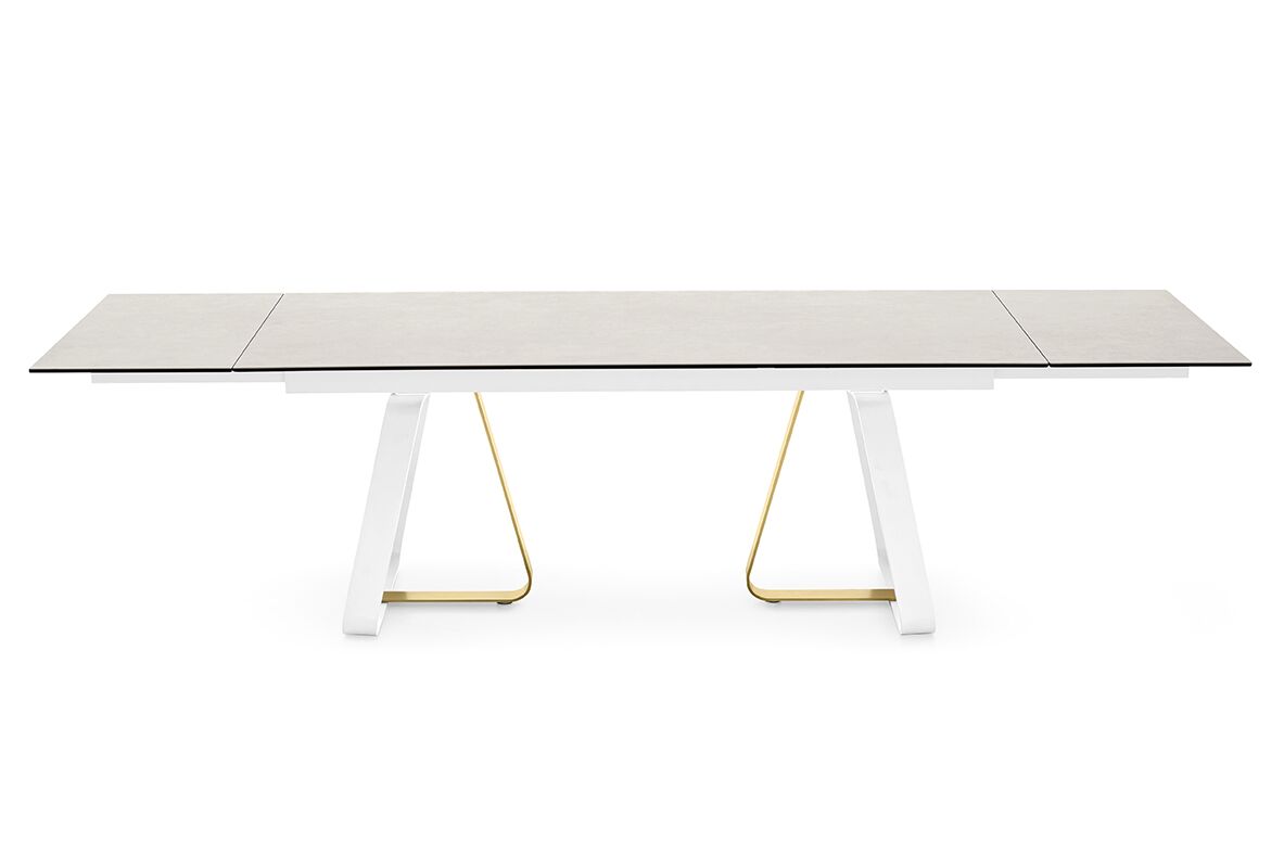 Sunshine to rozkładany stół idealny do wszystkich pomieszczeń mieszkalnych. Podstawa metalowa, osadzona na nóżkach poziomujących, składa się z elementu w kształcie litery U i elementu w kształcie litery L, które są mocowane za pomocą ukrytych śrub.