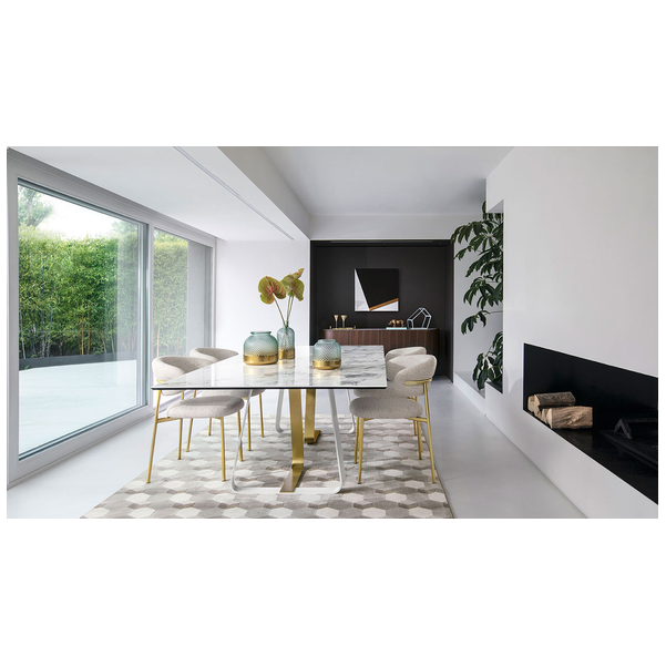 Sunshine to prostokątny stół idealny do wszystkich pomieszczeń mieszkalnych. Podstawa metalowa, osadzona na nóżkach poziomujących, składa się z elementu w kształcie litery U i elementu w kształcie litery L, które są mocowane za pomocą ukrytych śrub.