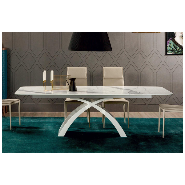 Stół Tokyo marki Tonin Casa robi imponujące wrażenie we współczesnym pomieszczeniu. Rzeźbiona podstawa przyciąga wzrok, a krzyżujące się zakrzywione wsporniki dodają wyrafinowanego stylu, aby uczynić stół wyrazistym elementem. Dzięki dużej ilości miejsca na blacie wiele osób może usiąść przy stole i wygodnie zjeść. Różnorodne modne krzesła Tonin Casa pięknie wyglądają w połączeniu ze stołem, tworząc spójny wygląd. Zaprojektowany przez Gino Carollo i wyprodukowany we Włoszech wyłącznie z najlepszych materiałów, stół Tokyo to trwały mebel, który będzie trwał przez długi czas. Wybieraj spośród różnych wykończeń blatu, podczas gdy rama i podstawa mają różne wykończenia. Dostępne są dwa rozmiary dostosowane do indywidualnych potrzeb.