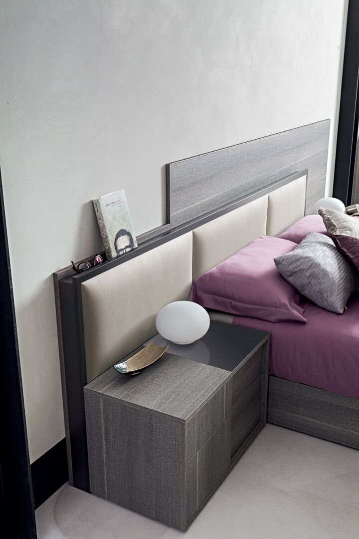 Nowoczesna sypialnia Futura o eleganckim designie to niewidzialna granica między tradycją i nowoczesnością. Jakość materiałów, certyfikaty produktów, kontrola produkcji, doskonałe wyposażenie, doskonałe właściwości użytkowe, to wszystko to meble Status 100% Made in Italy. Kolekcja zawiera niezbędny zestaw mebli do wygodnej organizacji przestrzeni i jej zagospodarowania przestrzennego. Do zestawu wybrano laminat z matowego szarego dębu o powierzchni odpornej na zarysowania. Połączone wezgłowie łóżka, a także oryginalnie zaprojektowane fronty mebli „nad głową” podkreślają ich indywidualność.