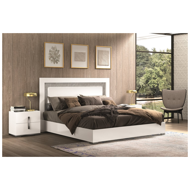 Sypialnia Mara to eleganckie meble charakteryzujące się pięknem wzornictwa, prostotą i lakonizmem form oraz zachwycającymi wykończeniami, dzięki zastosowaniu innowacyjnych materiałów. W kolekcji znajdują się podwójne łóżko z szerokimi ramami, niskimi metalowymi nogami i drewnianymi zagłówkami z matową stalową dekoracją. Zestaw uzupełniają także szafki nocne, komody, szafy i lustra. Materiałem do produkcji jest płyta MDF pokryta ekologicznymi błyszczącymi białymi lakierami, których nakładanie odbywa się w kilku etapach. Całość zdobią również elementy ze stali polerowanej i matowej, efektowne uchwyty, lustra, wspaniały design blatu komody i postumentów, a wysokiej jakości wyposażenie wnętrza daje właścicielowi maksymalny komfort.