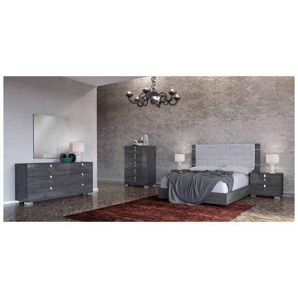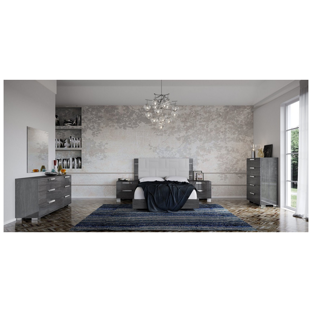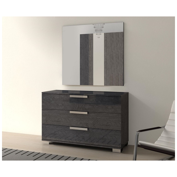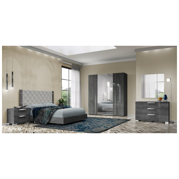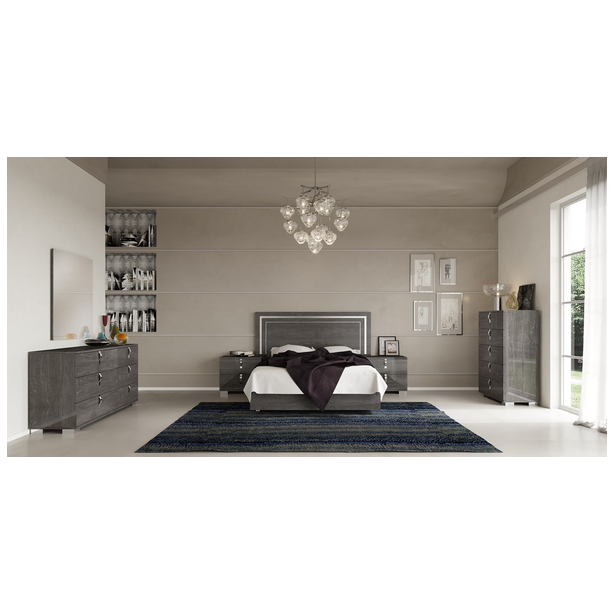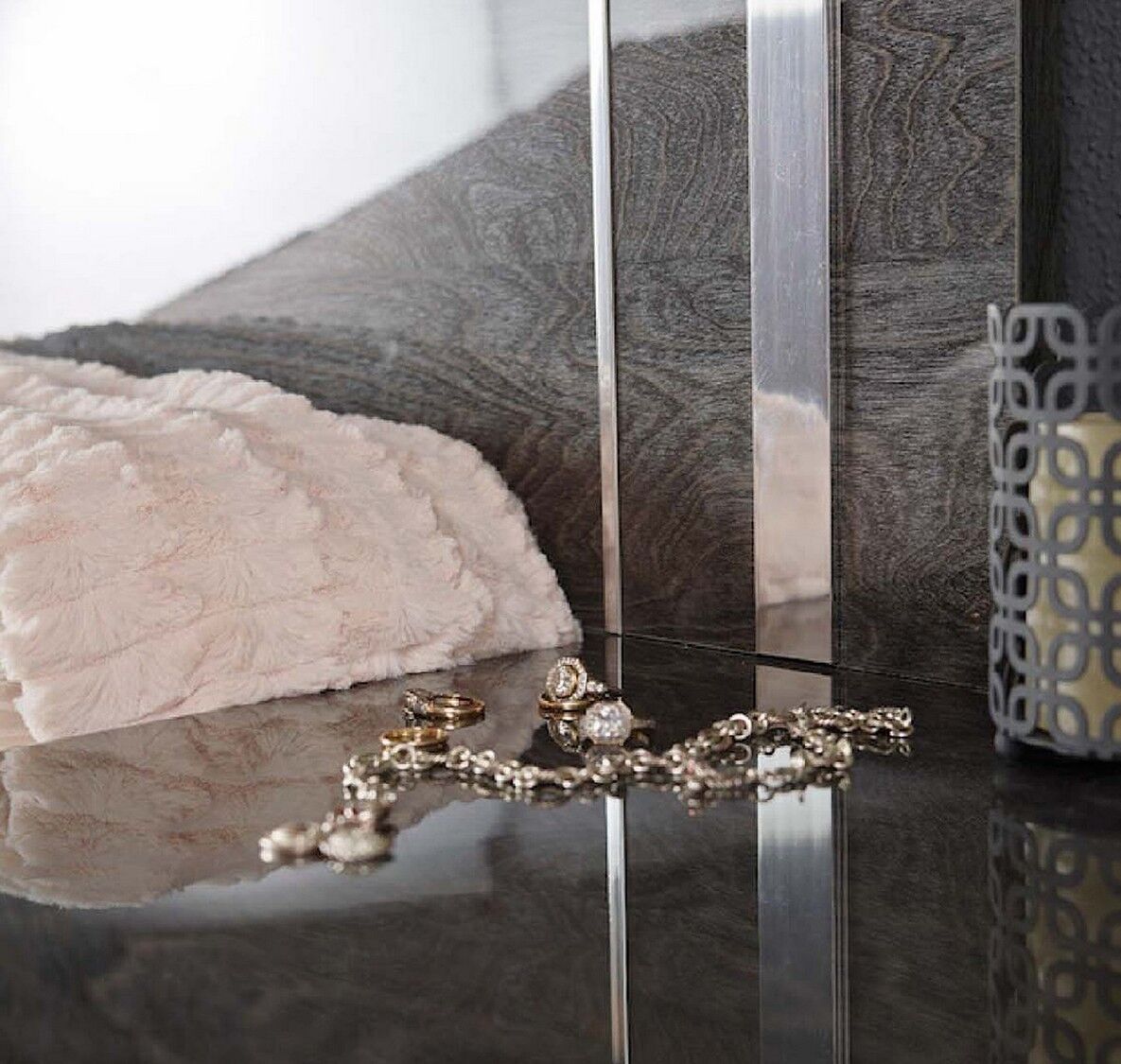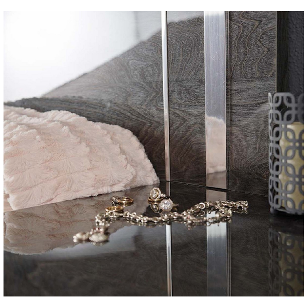 Sypialnia Sarah to zestaw stworzony przez pryzmat innowacji i tradycji w branży meblarskiej. W kolekcji znajdują się wszystkie niezbędne meble do wygodnej i harmonijnej aranżacji przestrzeni. W produkcji mebli stosuje się materiał w kolorze szarej brzozy, prezentowany w błyszczącej powłoce lakierniczej, której nakładanie odbywa się w kilku etapach. Blask powierzchni mebli doskonale łączy się z pięknem polerowanych chromowanych elementów, zakrzywionych uchwytów, z wbudowanymi szkłami i oświetleniem LED, luster. Meble tapicerowane oraz zagłówek tapicerowane są ekoskórą w kolorze beżowym z przeszyciami i mikrofibrą.