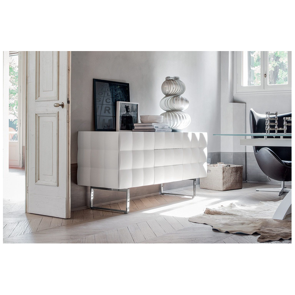 Komoda Venice jest częścią kolekcji jadalnej Venice od Tonin Casa i stanowi wyraz nowoczesnego salonu. Ma ten sam wzór w kratkę z wykończeniem z drewna orzechowego. Stojący na chromowanych metalowych nogach przyciągający wzrok Venice jest dostępny w kilku wersjach, które zaspokoją Twoje specyficzne wymagania dotyczące przestrzeni i przechowywania.