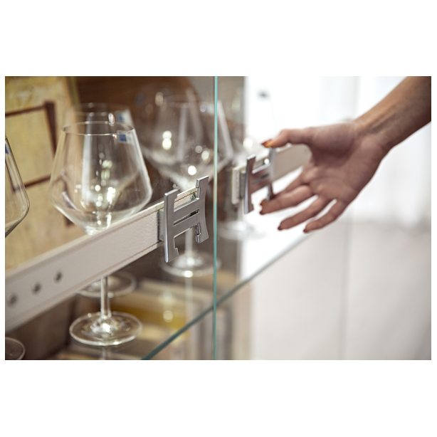 Inne elementy z kolekcji Evolution to 2-drzwiowy i 4-drzwiowy kredens z dopasowanym lustrem oferującym dużo miejsca do przechowywania oraz wybór 1-drzwiowych i 2-drzwiowych witryn z wewnętrznym oświetleniem LED. Szafka RTV jest również dostępna, jeśli chcesz poszerzyć kolekcję o salon. Kredensy, gabloty i szafki RTV również oferują wybór uchwytów. Pokazana na zdjęciach piękna rączka z logo na skórzanym pasku zmienia modele Evolution w bardzo nowoczesną współczesną kolekcję.