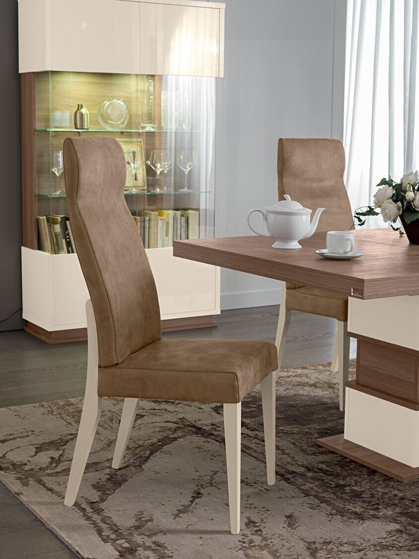 Nowoczesny włoski stół do jadalni Evolution ma piękne drewno i kontrastujące wykończenie w kolorze kości słoniowej. Ten włoski zestaw do jadalni może pomieścić od 4 do 10 osób i jest idealny zarówno dla mniejszych, jak i większych rodzin.