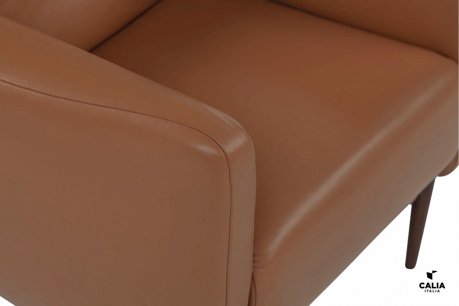 Trzeźwe i istotne linie. Styl nordycki, inspiracja z lat 60. Pojedynczy guzik podkreślający centralne pikowanie na plecach oraz cienka i wysoka kolczasta stopa uwydatnia podłokietnik w stylu secesyjnym o zakrzywionym i falistym profilu. To wszystko to Poli, mały fotel zaprojektowany przez Calia Italia, który nadaje styl nawet małym przestrzeniom, oferując komfort zawieszony między przeszłością, a przyszłością.