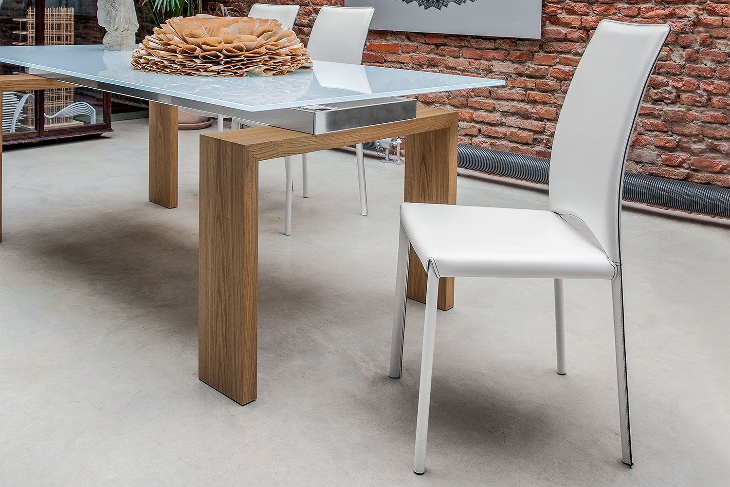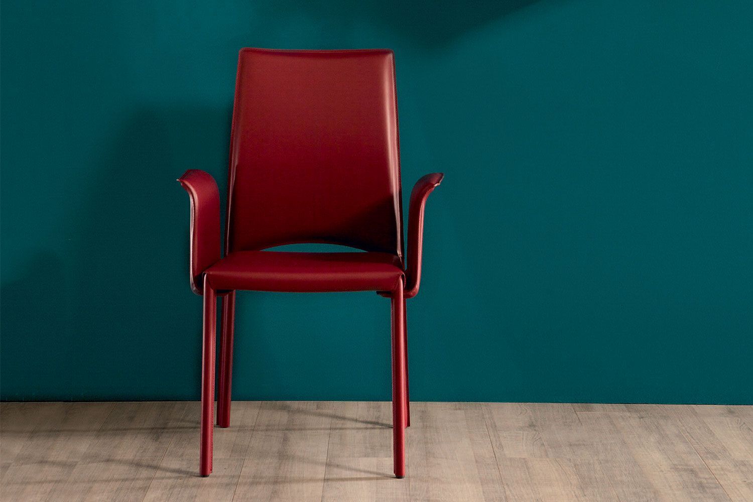 Madeleine to wygodne i wyrafinowane rozwiązanie do siedzenia we współczesnej kuchni lub jadalni. Z lekko zakrzywionym oparciem i pochylonymi nogami, krzesło pozwala wygodnie odchylić się do tyłu i zapewnia ergonomiczne podparcie. Luksusowa i miękka tapicerka jest przyjemna w dotyku. Połącz go z różnymi dużymi stołami do jadalni Tonin Casa, aby uzyskać spójny, stylowy wygląd. Tapicerka ma do wyboru różne opcje twardej skóry, a przeszycie i lamówka mogą być dopasowane do materiału lub w kontrastowym kolorze. Madeleine występuje również jako fotel.