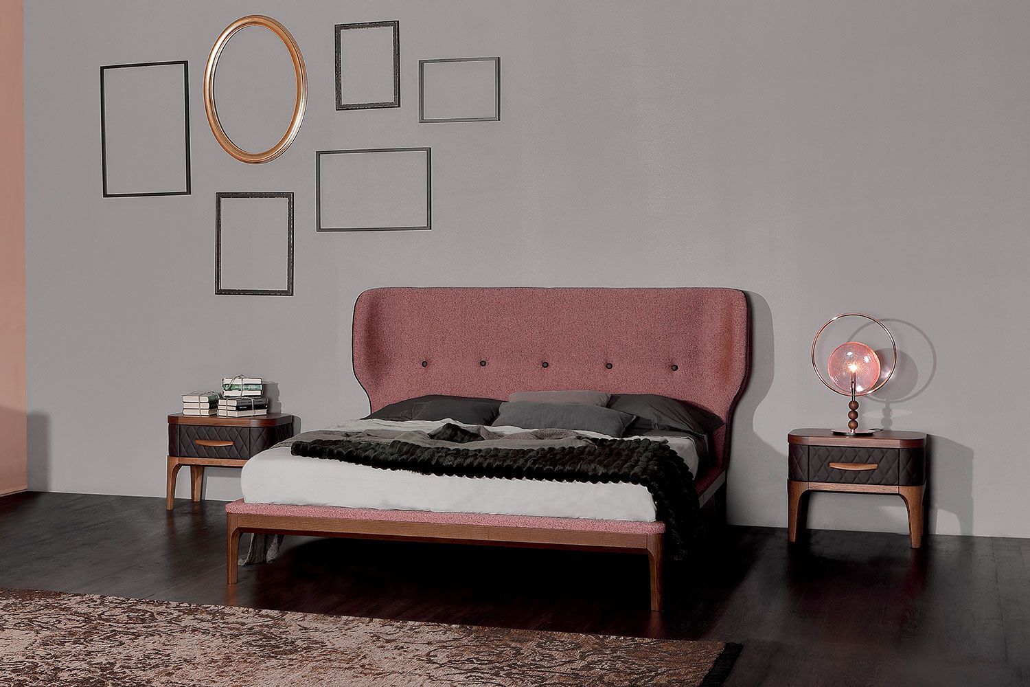 Zapewnij sobie najlepszy sen na eleganckim łóżku Ambra. Zagłówek wyróżnia się stylem w nowoczesnej sypialni, dzięki szykownym detalom i luksusowo miękkiej tapicerce. Ambra to łóżko typu king-size z różnymi opcjami tapicerki ze skóry, ekoskóry i tkaniny. Podstawa jest dostępna w szerokiej gamie wykończeń drewna.