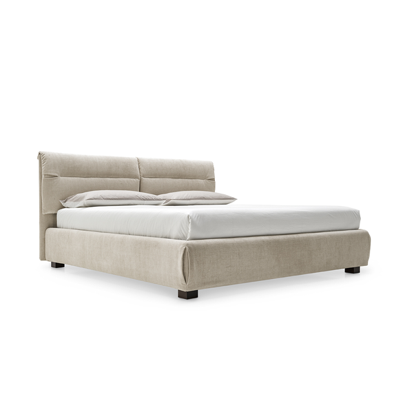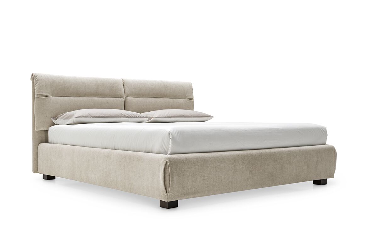 Austin to łóżko ze zintegrowanym wezgłowiem i poduszką. Te dwie miękkie, wygodne poduszki zostały podwyższone za pomocą zakładki, która podobnie jak detal na garniturze staje się znakiem rozpoznawczym produktu, który podkreśla dotykowe piękno skóry i tkaniny. Poziome stebnowanie wyznacza linię łączącą, która łagodzi efekt wizualny i tworzy elegancką wyrafinowaną estetykę łóżka z dodatkową opcją kontenera.