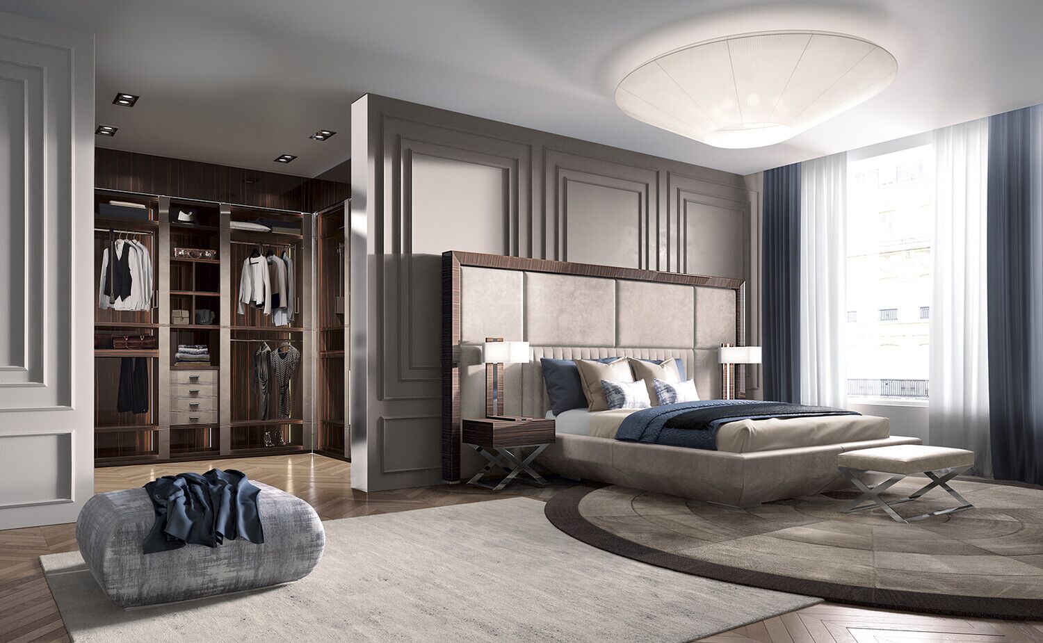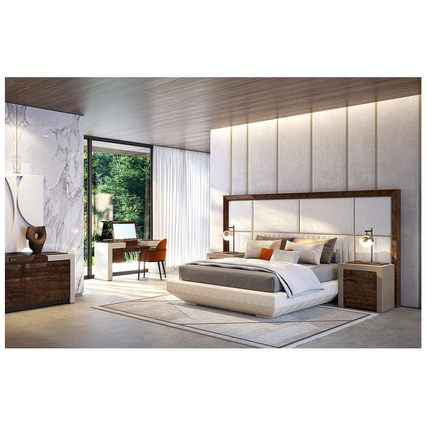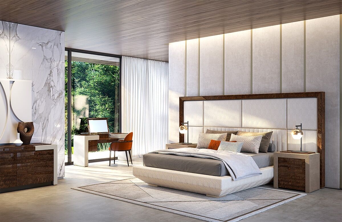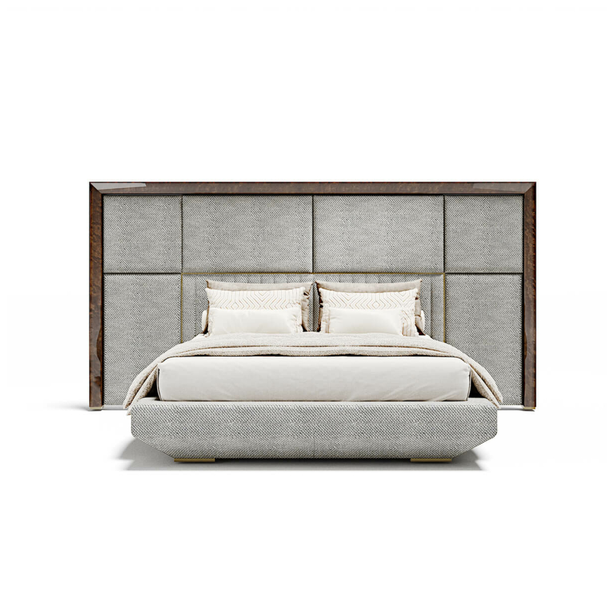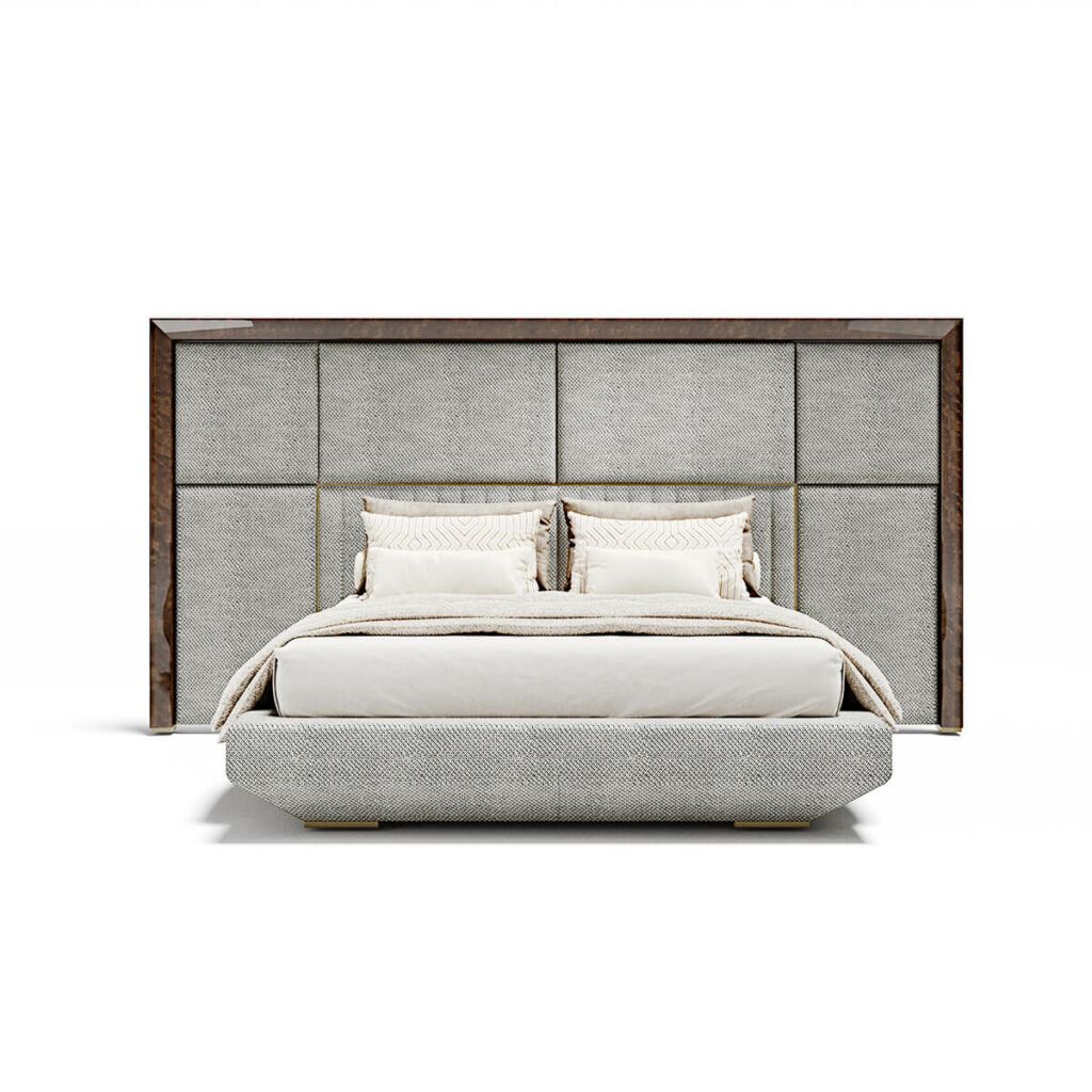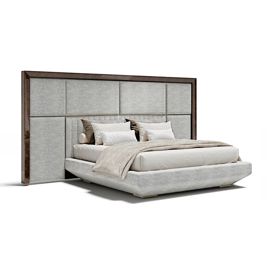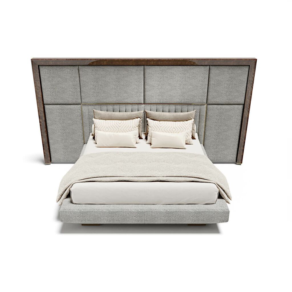 Interpretacja strefy spania w imię precyzji. Kimera to łóżko tapicerowane, które kładzie nacisk na materiały i miękką wyściółkę zagłówka dostępnego w tkaninie lub skórze.