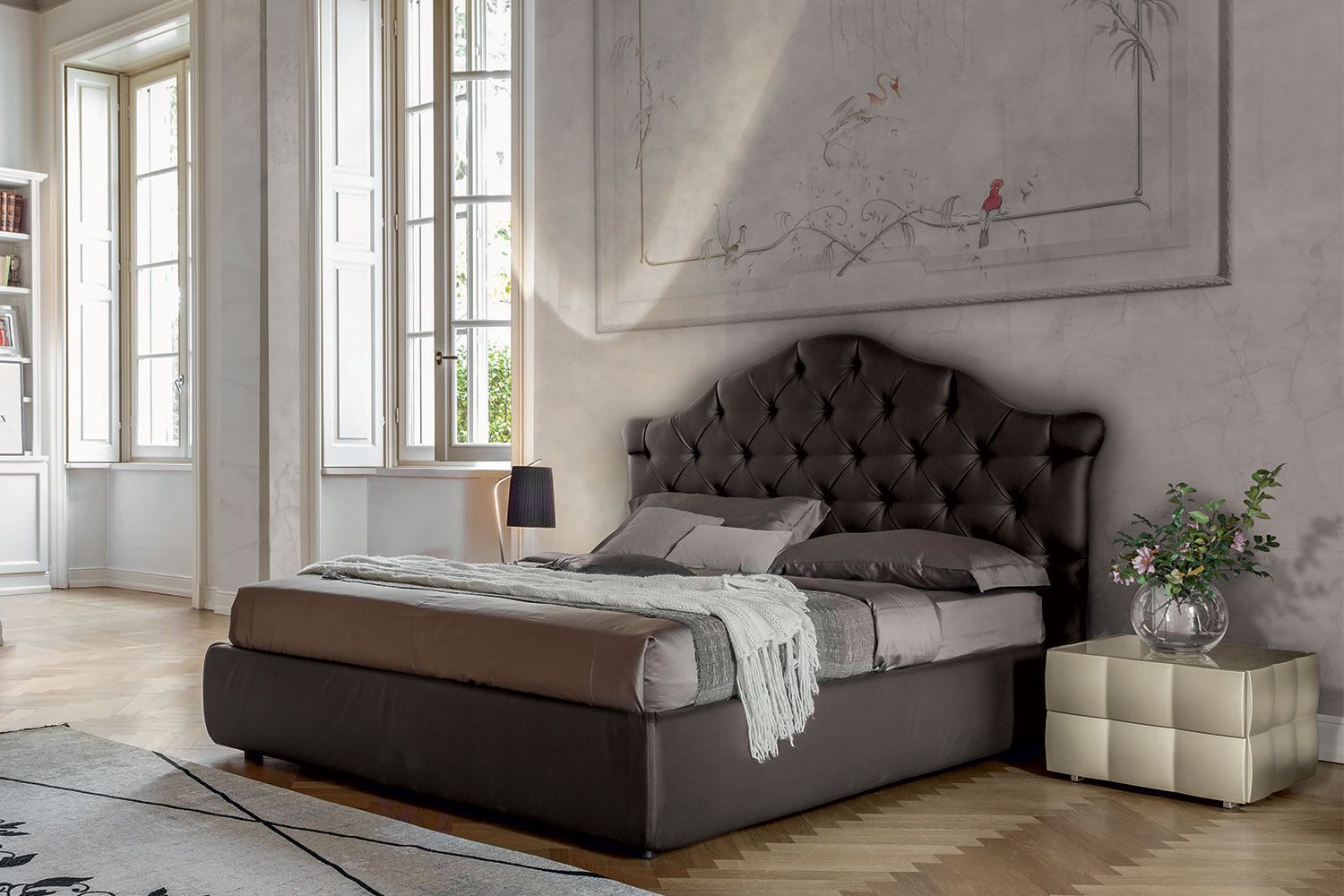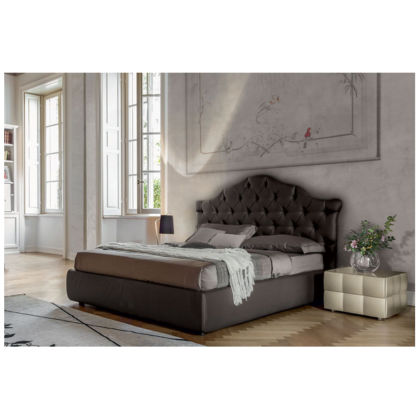 Wspaniałe i eleganckie łóżko Veneziano marki Tonin Casa wyróżnia się stylem w nowoczesnej sypialni. Gustowny zagłówek z asymetrycznymi krawędziami dodaje szyku, szczegółowy, pikowany wzór dodaje wyrafinowanego akcentu, aby łóżko stało się wspaniałym punktem centralnym sypialni. Dzięki luksusowej tapicerce i wysokiej jakości materiałom Veneziano będzie trwałe przez lata. Aby zapewnić wygodną funkcję, dostępne są opcjonalne schowki, które ułatwiają organizację. Dostępne są różne opcje tapicerki skórzanej i ekoskóry.