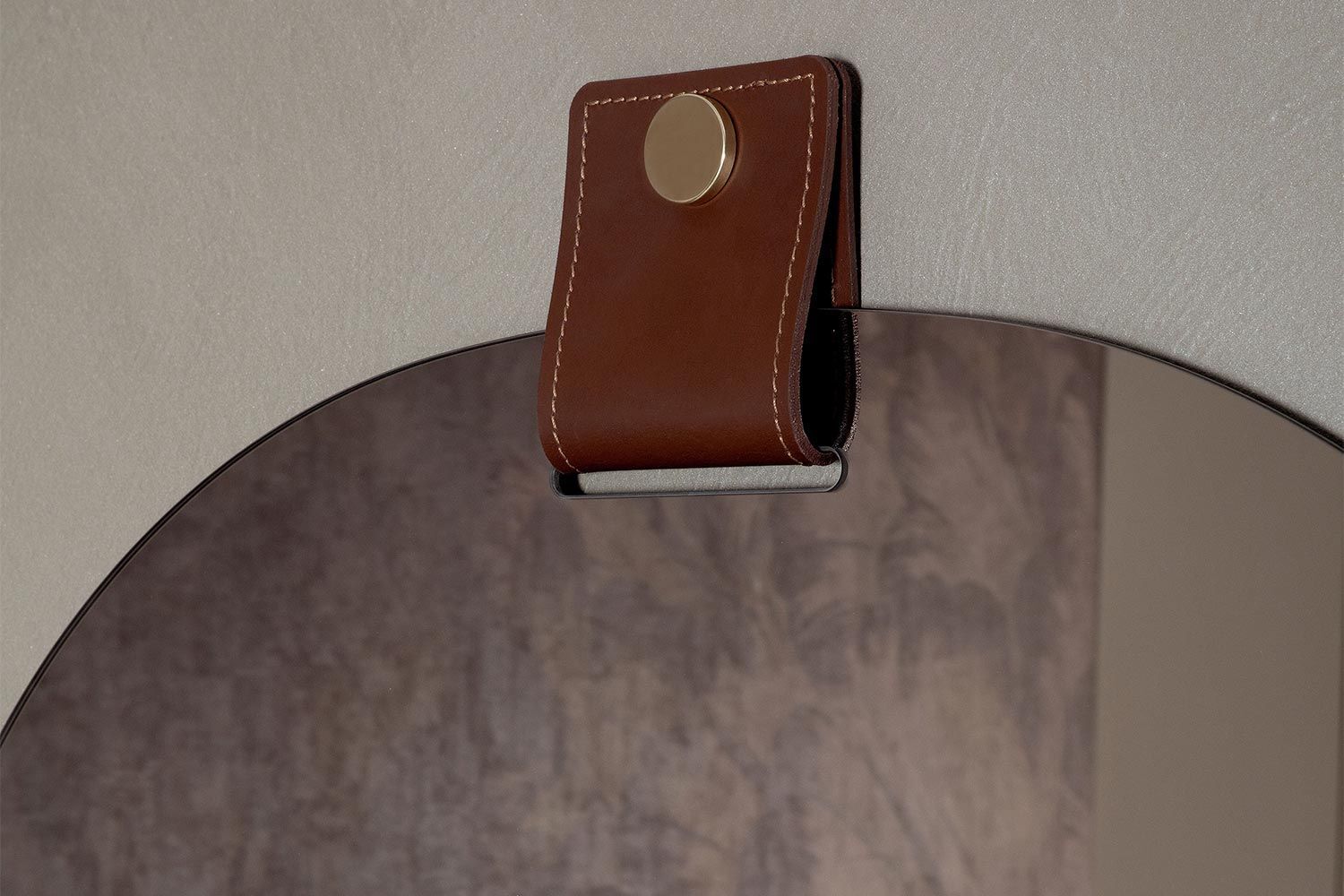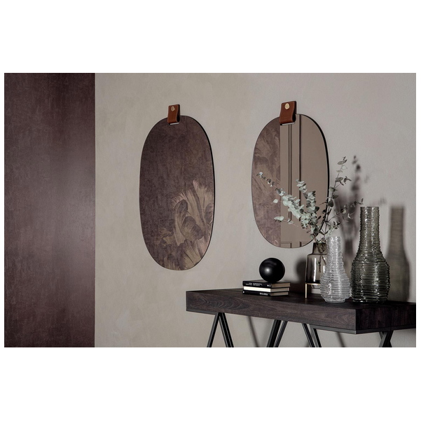Dodaj uroku do swojego nowoczesnego domu, dzięki Belty. Lustro zawieszone jest na ścianie za pomocą luksusowego skórzanego paska i błyszczącego metalowego akcentu, który odbija się od lustrzanego szkła. Dzięki dużemu kształtowi beczki wyróżnia się wszędzie tam, gdzie jest umieszczony i daje złudzenie, że pomieszczenie jest większe, niż się wydaje. Wyprodukowane i zaprojektowane we Włoszech w celu zapewnienia jakości, lustro Belty firmy Tonin Casa jest dostępne w wersji małej i dużej. Klamra jest wykonana z grubej skóry koniakowej, lustro ma wybór między różnymi kolorami wykończeń.