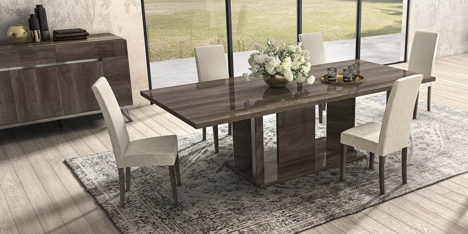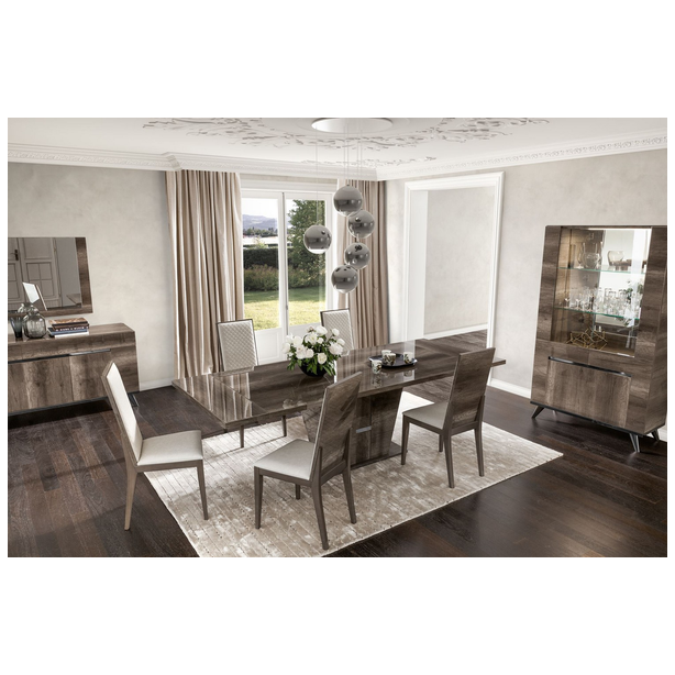 Medea to stylowy zestaw, który łączy w sobie urok nowoczesności z lekką nutą klasyki. Kolekcja opracowywana jest z uwzględnieniem trendów branży meblarskiej z wykorzystaniem tajnych technik produkcji i zdobienia, wyposażenia, innowacyjnych materiałów, które podkreślają kreatywne myślenie projektantów, którzy swoje śmiałe pomysły ucieleśniają w kompozycji. Meble charakteryzują geometryczne kształty, prezentowane w wykończeniu vintage dąb, w błyszczących lakierach, których aplikacja odbywa się w kilku etapach. Całość zdobią również: przezroczyste szkło hartowane, polerowane chromowane fazowane nogi gablot, cokoły i kredensy, lustra, wbudowane oświetlenie, a także ekoskóra tapicerka krzeseł.