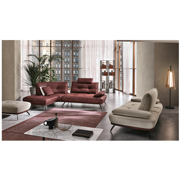 Bogata w detale sofa Bogart, od pikowania siedziska i oparcia po dwukolorową podstawę, ważną rzeczą jest wykończenie specjalnym szwem X, który charakteryzuje cały model. Wyściółka z pianki poliuretanowej o różnej gęstości, dostępna w wersji ze skóry i tkaniny, z wykończeniem metalowej stopy.