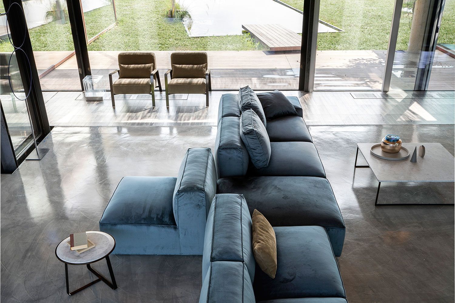 Sofa Cairoli to wyjątkowe dwustronne rozwiązanie do siedzenia, które robi imponujące wrażenie w nowoczesnym domu. Dzięki miękkiej tapicerce i wyściełanej wyściółce zapewnia wygodę przez wiele godzin, czyniąc ją jednym z najlepszych siedzeń w domu. Prostokątny profil przyciąga uwagę współczesnego stylu. Dostępne są opcje tapicerki materiałowej i skórzanej, a także szwy w dopasowanym, jaśniejszym lub ciemniejszym kolorze.