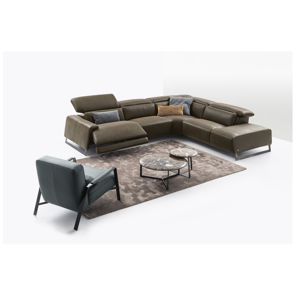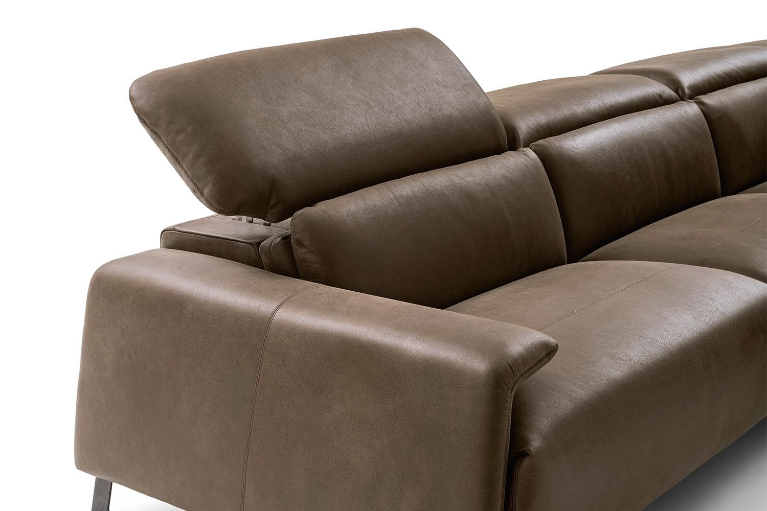 Połącz komfort z elegancją, aby uzyskać wspaniałą sofę segmentową Canaletto z rozkładanym fotelem Nicoline Italia. Canaletto jest pełen wygodnych elementów, takich jak fotel na jednym końcu i regulowane zagłówki, które zapewniają podparcie i promują prawidłową postawę. Fotel i zagłówek można otwierać i zamykać dwoma przyciskami po jednej stronie. Sofa segmentowa Canaletto z rozkładanym oparciem jest dostępna w dwóch rozmiarach oraz w konfiguracji lewej i prawej. Dostępny jest opcjonalny akumulator, który umożliwia bezprzewodową pracę elektrycznego fotela. Opcje tapicerki obejmują tkaniny i skóry, a nogi są w różnych kolorach metalu, szwy mogą być dopasowane do materiału lub mieć jaśniejszy lub ciemniejszy kolor.