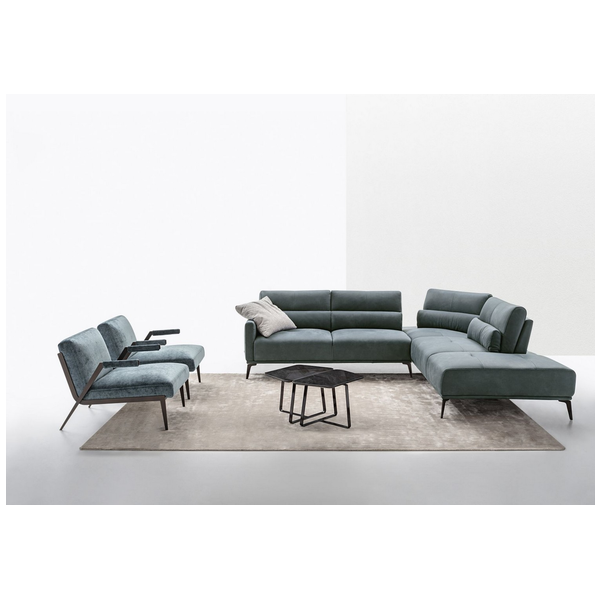 Praktyczny narożnik Canarie firmy Nicoline Italia robi imponujące wrażenie w nowoczesnym salonie. Ukośna poduszka w rogu uzupełnia proste poduszki po obu stronach, zapewniając urzekający dotyk. Dzięki ruchomym poduszkom oparcia w kilka sekund tworzy głębsze i wygodniejsze siedzisko. Dzięki misternym przeszyciom i kontrastującym materiałom sofa błyskawicznie poprawia wygląd otoczenia. Występuje w dwóch rozmiarach w konfiguracji lewej i prawej, a nogi są wykończone w wielu metalowych opcjach. Wybieraj spośród różnych tkanin i skór na tapicerkę, a szwy mogą mieć pasujący, jaśniejszy lub ciemniejszy kolor.