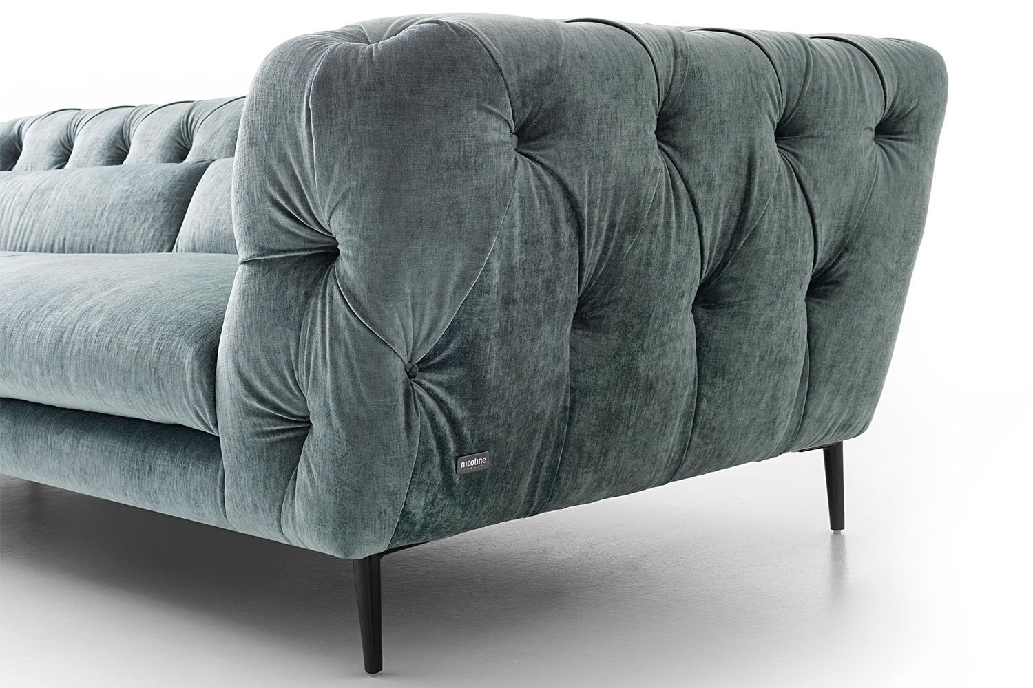 Czarujący styl do nowoczesnego domu, dzięki sofie Cordusio firmy Nicoline Italia. Ozdobione guzikami detale wzdłuż ramy tworzą teksturowany wzór w stylu argyle, nadający geometryczny akcent. Dzięki głębokiemu siedzisku i wyściełanej wyściółce jest nie tylko oszałamiający, ale także stanowi wygodne miejsce do siedzenia i relaksu. Dzięki zastosowaniu najlepszej jakości materiałów sofa przez długi czas będzie stanowić podstawowy element mebla. Wyprodukowana we Włoszech z niezwykłą dbałością o szczegóły, sofa Cordusio jest dostępna w trzech rozmiarach. Wybierz między różnymi opcjami tapicerki z tkaniny i skóry, a także dopasowanymi, jaśniejszymi lub ciemniejszymi przeszyciami. Nogi mają różne metalowe wykończenia.