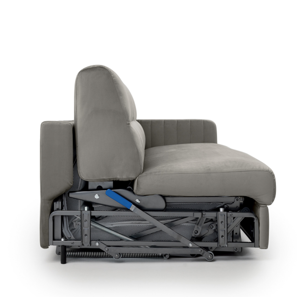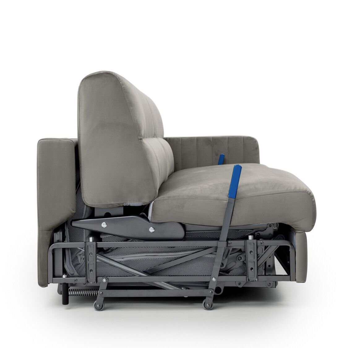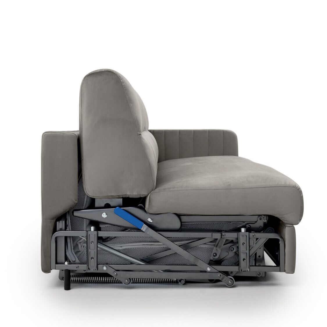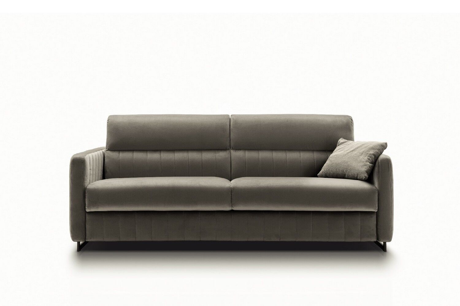 Rozkładana sofa Kleo od Nicoline Italia to obowiązkowy dodatek do nowoczesnego domu, który potrzebuje więcej opcji aranżacji. Elegancka sofa rozkłada się jednym szybkim ruchem, zmieniając ją w wygodne łóżko. Aby zwiększyć atrakcyjność, poduszki siedziska składają się pod materacem, podczas gdy poduszki oparcia również składają się do tyłu. Dzięki misternym pikowanym szwom na miękkiej tapicerce tworzy wzór w paski, który przyciąga wzrok. Idealnie nadaje się do domów, w których liczy się przestrzeń, jako atrakcyjny mebel. Wyprodukowana we Włoszech, aby zapewnić jakość, sofa do spania Kleo jest dostępna w dwóch rozmiarach, aby zaspokoić indywidualne potrzeby. Opcje tapicerki obejmują szereg tkanin i skór, szwy są wykonane z dopasowanych, jaśniejszych lub ciemniejszych kolorów. Nogi są w różnych kolorach metalu.