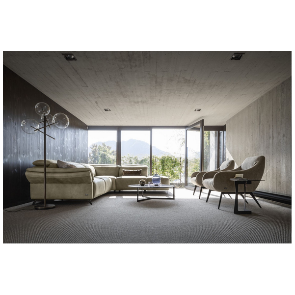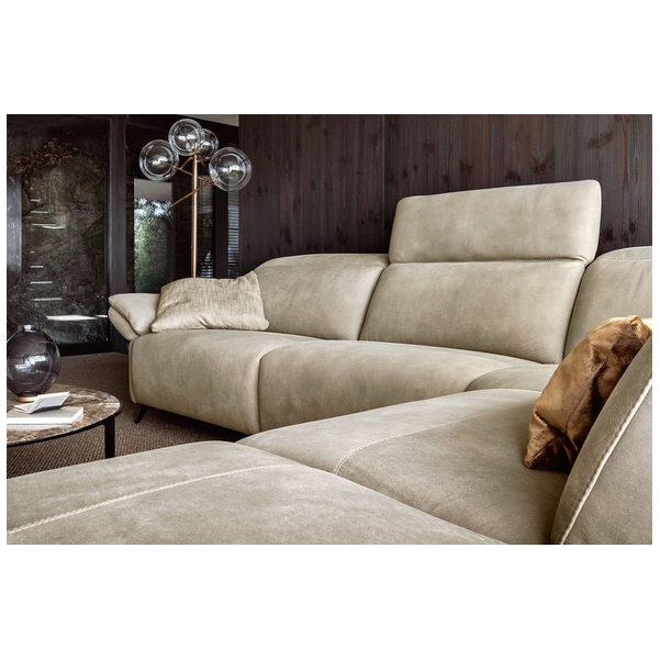 Narożnik Salina z rozkładanym fotelem firmy Nicoline Italia to wspaniały mebel, który będzie stanowić piękny element wystroju w nowoczesnym salonie. Pełna praktycznych funkcji sofa posiada niezależne elektryczne mechanizmy podnóżka i zagłówka, które pozwalają na precyzyjne odchylenie do własnych upodobań, a także regulowane podłokietniki dla większego komfortu. Klasyczna sylwetka dobrze komponuje się z resztą współczesnych mebli, tworząc spójny wygląd. Wyprodukowany we Włoszech z niezwykłą dbałością o szczegóły, Salina z rozkładanym fotelem jest dostępny w wielu rozmiarach oraz w konfiguracji lewej i prawej. Wybierz między różnymi opcjami tapicerki materiałowej i skórzanej, a także różnymi metalowymi wykończeniami nóg. Szwy są w dopasowanym, jaśniejszym lub ciemniejszym kolorze, a opcjonalny zestaw baterii umożliwia bezprzewodową pracę elektrycznego fotela i zagłówka.