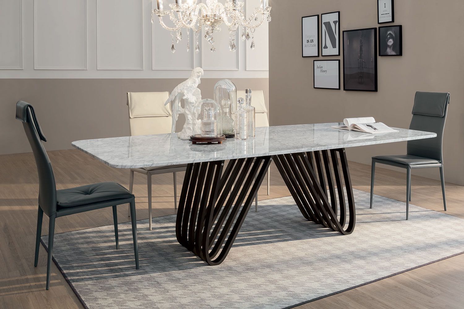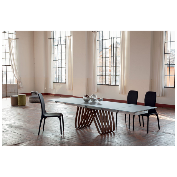 Stół Arpa to produkt obowiązkowy dla rodzin wielodzietnych. Rzeźbiarska podstawa jest inspirowana harfą i zawiera kombinację przyciągających wzrok krzywizn i ostrych kątów, które zapewniają geometryczny akcent. Z wieloma zakrzywionymi drewnianymi akcentami u podstawy, jest nie tylko estetyczny, ale także bardzo dobrze wspiera. Dostępny jest w czterech rozmiarach i posiada dwustronny mechanizm wysuwu z prowadnicami w różnych wykończeniach. Blat jest dostępny w różnych wersjach ze szkła, ceramiki, porcelany i marmuru. Blat Laminam® Ceramic to połączenie 3mm ceramiki połączonej z 8mm szkłem. Porcelanowy blat to połączenie 6 mm porcelany połączonej z 10 mm szkła. Blaty ceramiczne i porcelanowe są wykonane przy użyciu zaawansowanych technologii, które skutkują zmniejszoną grubością, podwyższoną odpornością na naprężenia mechaniczne, produkty chemiczne, zarysowania, głębokie otarcia i zginanie. Jest łatwy w utrzymaniu czystości, odporny na zimno, ogień, pleśń i promienie UV.