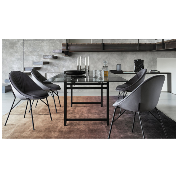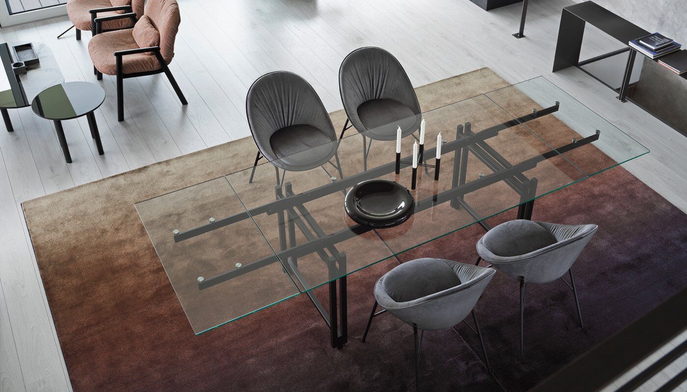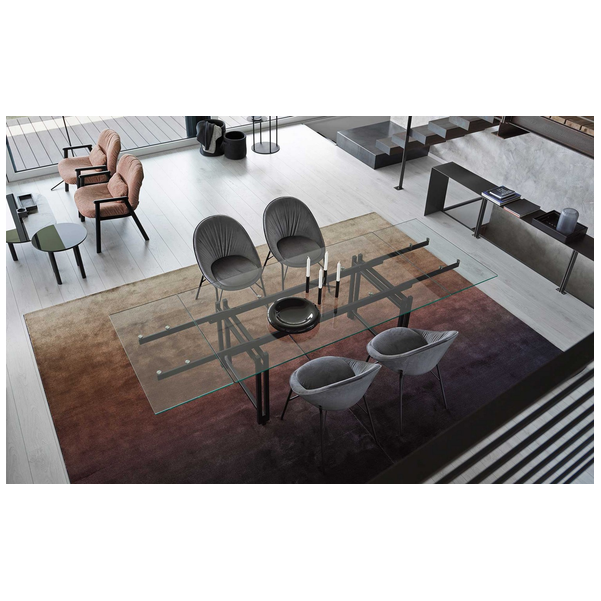 Rygorystyczny i formalny rozkładany stół Berlin inspirowany jest metalowymi konstrukcjami podziemia jego imiennika: niemieckiego miasta. Stół wywołuje wrażenie ekstremalnej lekkości dzięki przezroczystemu szklanemu blatowi i wspierającej go minimalistycznej podstawie składającej się z metalowej rury o przekroju kwadratowym. Dzięki dwóm niezależnym dobudowaniom Berlin idealnie pasuje do dużych jadalni. Idealnie wkomponowane w konstrukcję, ślizgają się po aluminiowych prowadnicach dopasowanych do podstawy i zwiększają długość stołu o trzy stopy.