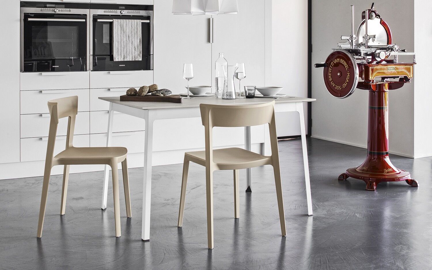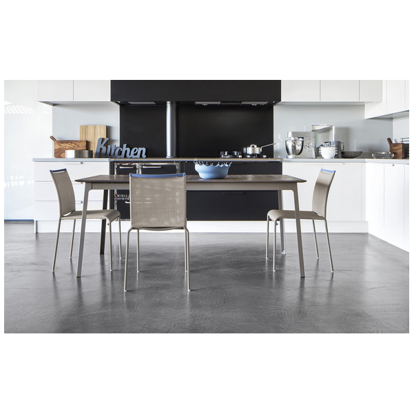 Lekki, o minimalistycznym wyglądzie, Dot idealnie wpasuje się w każdą kuchnię, dopasowując się do otoczenia i stając się idealnym miejscem na romantyczne kolacje przy świecach, a także na tętniące życiem rodzinne spotkania. Skrzydło dostawne, w tym samym wykończeniu co blat i przechowywane pod nim, jest ustawiane ręcznie, a powlekane metalowe nogi zawsze pozostają w rogach, aby zapewnić maksymalny komfort wszystkim gościom. Dot to stół łączący elegancką lekkość z precyzyjnym dążeniem do stylu.