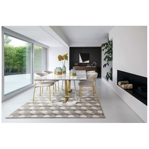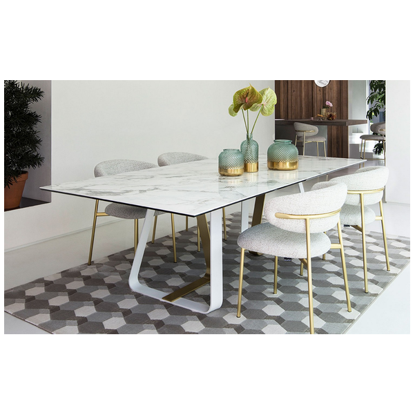 Sunshine to prostokątny stół idealny do wszystkich pomieszczeń mieszkalnych. Podstawa metalowa, osadzona na nóżkach poziomujących, składa się z elementu w kształcie litery U i elementu w kształcie litery L, które są mocowane za pomocą ukrytych śrub.