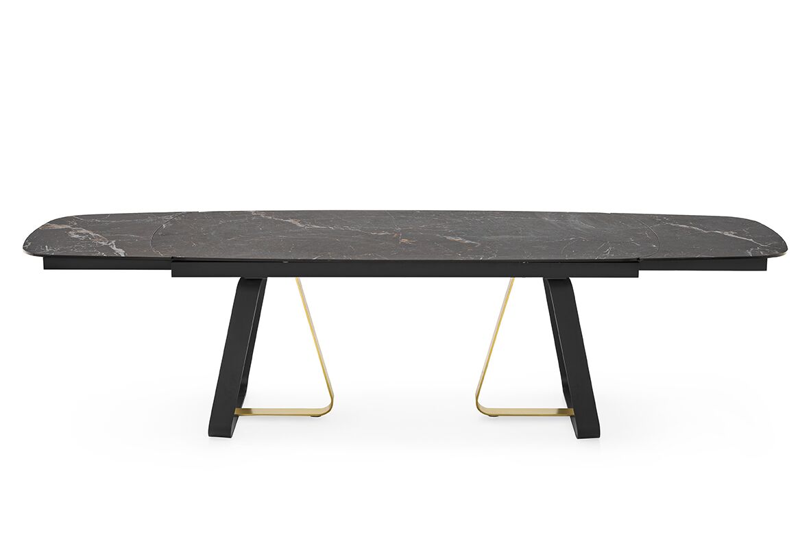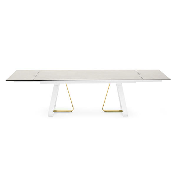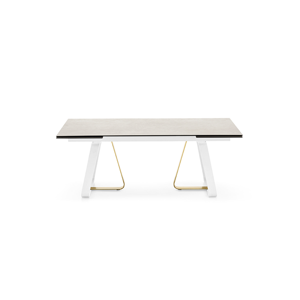 Sunshine to rozkładany stół idealny do wszystkich pomieszczeń mieszkalnych. Podstawa metalowa, osadzona na nóżkach poziomujących, składa się z elementu w kształcie litery U i elementu w kształcie litery L, które są mocowane za pomocą ukrytych śrub.