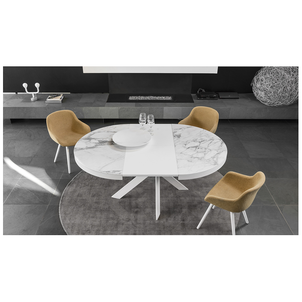 Tivoli to okrągły rozkładany stół z oryginalną metalową podstawą składającą się z 4 zazębiających się elementów w kształcie litery V, przypominający grę Shanghai. Solidny okrągły blat jest dostępny w wersji drewnianej lub ceramicznej i można go rozbudować dzięki centralnemu mechanizmowi otwierania motylkiem. Tivoli zajmie centralne miejsce w Twojej jadalni. Odkryj właściwe wykończenie dla Twojego ustawienia.