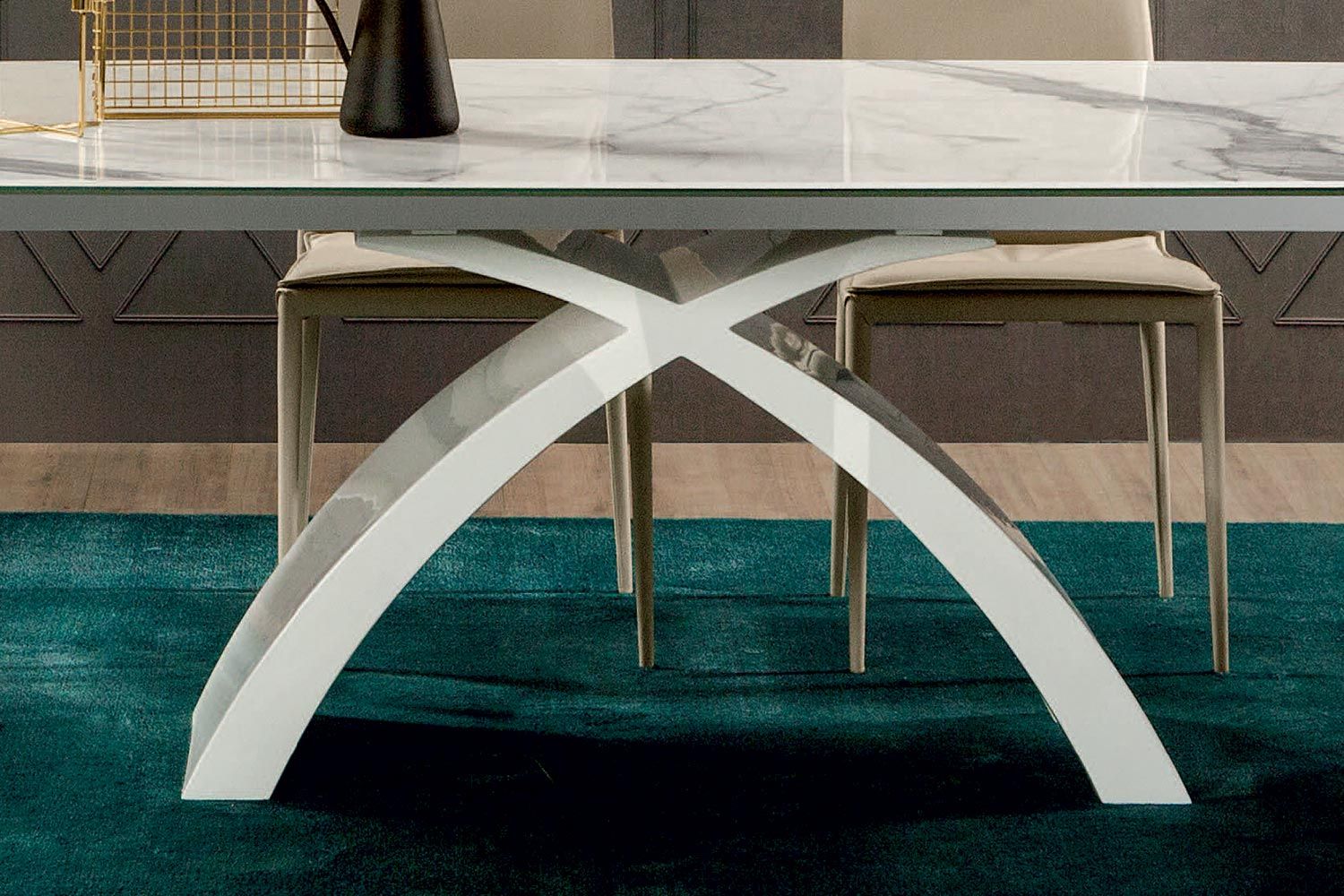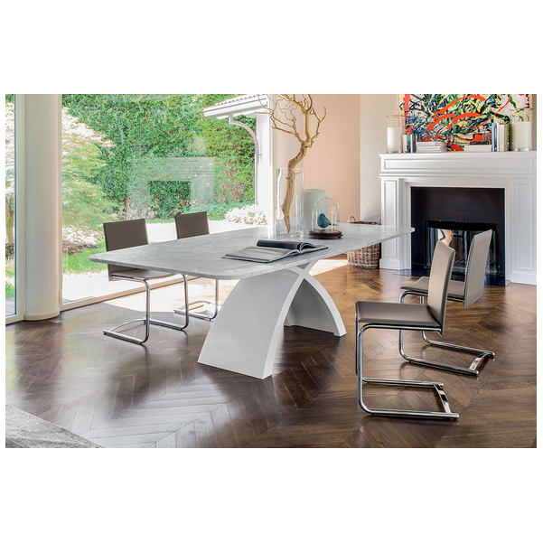 Stół Tokyo marki Tonin Casa robi imponujące wrażenie we współczesnym pomieszczeniu. Rzeźbiona podstawa przyciąga wzrok, a krzyżujące się zakrzywione wsporniki dodają wyrafinowanego stylu, aby uczynić stół wyrazistym elementem. Dzięki dużej ilości miejsca na blacie wiele osób może usiąść przy stole i wygodnie zjeść. Różnorodne modne krzesła Tonin Casa pięknie wyglądają w połączeniu ze stołem, tworząc spójny wygląd. Zaprojektowany przez Gino Carollo i wyprodukowany we Włoszech wyłącznie z najlepszych materiałów, stół Tokyo to trwały mebel, który będzie trwał przez długi czas. Wybieraj spośród różnych wykończeń blatu, podczas gdy rama i podstawa mają różne wykończenia. Dostępne są dwa rozmiary dostosowane do indywidualnych potrzeb.